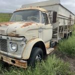 Ford 900 grain truck, VIN S91LVB38898, 20’ box, steel floor, tandem axle, diesel eng., 4X2 speed transmission