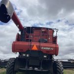 *2011 CaseIH 7088, SN. YBG005380, Bish grain bin extensions, 849 Eng. Hrs., 580 Sep Hrs., round bar concaves, PF package, base tube unloading auger, ext. wear rotor w/4 bars, lateral tilt feeder, touch screen display, standard duty oil cooler, standard transition cone, straw chopper, spreaders, 1 1/8” sieves