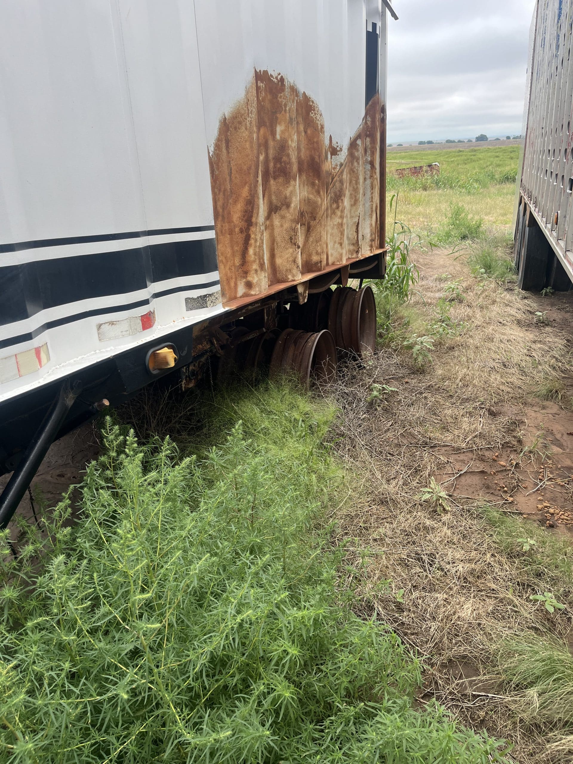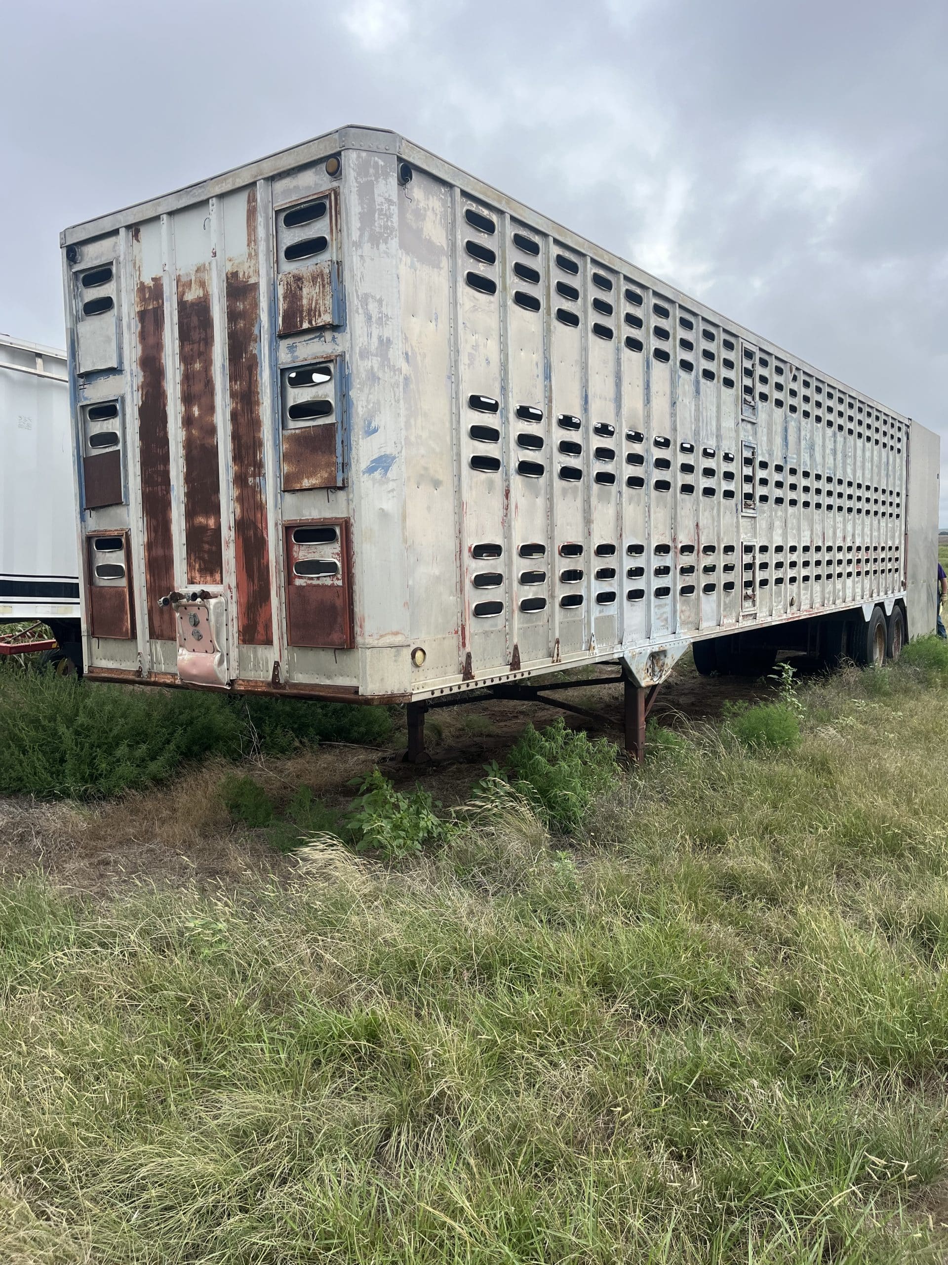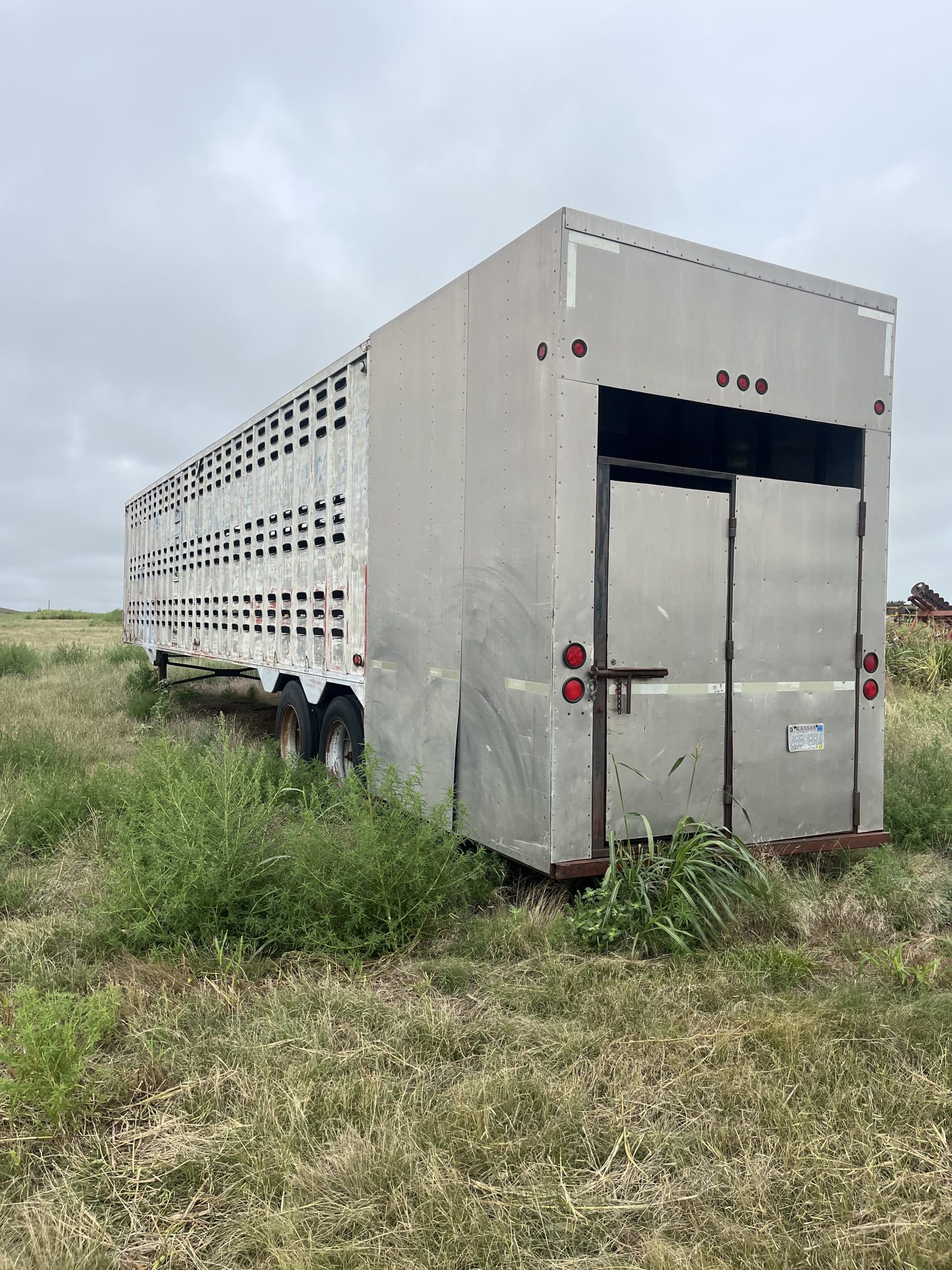 Semi livestock floor trailer, w/shop built ground load, rough