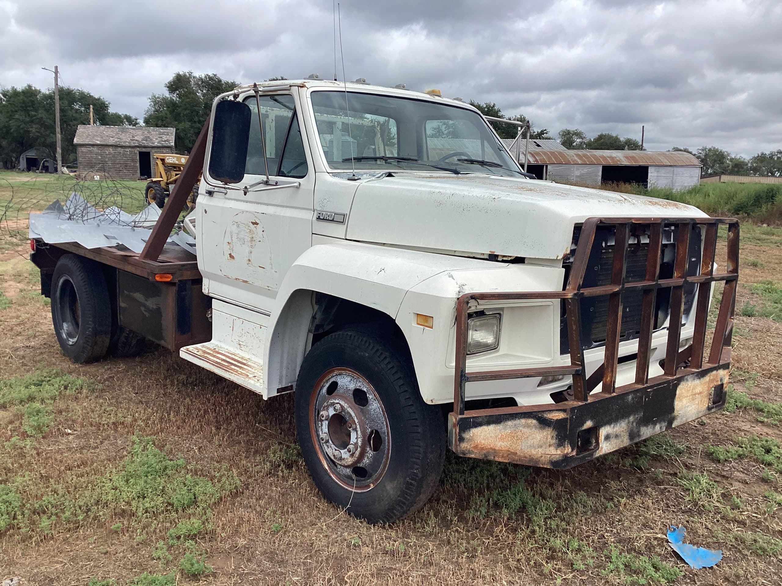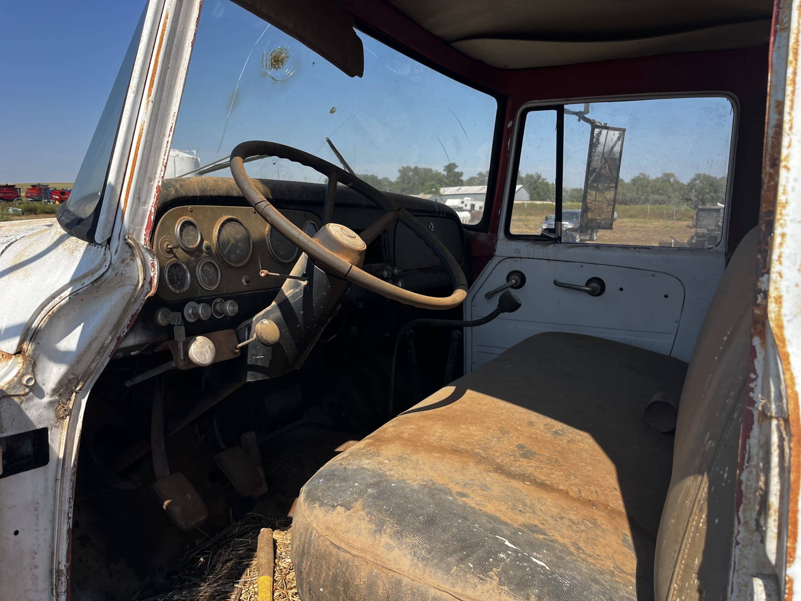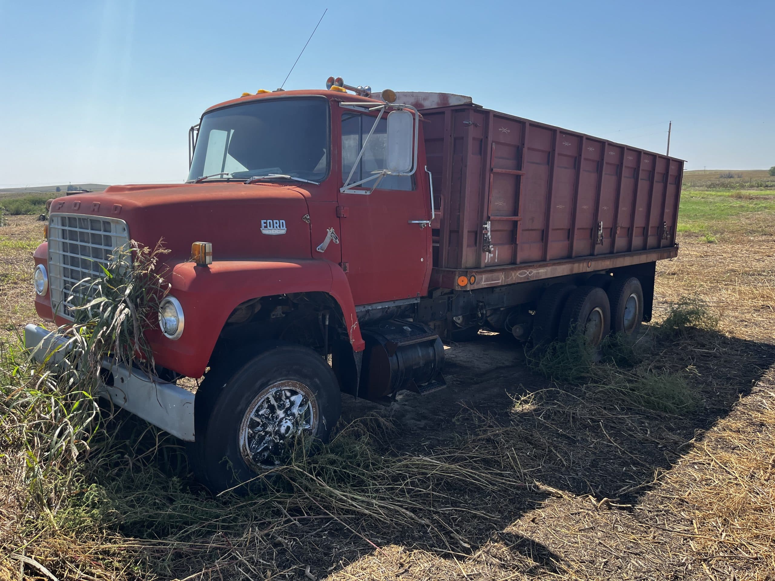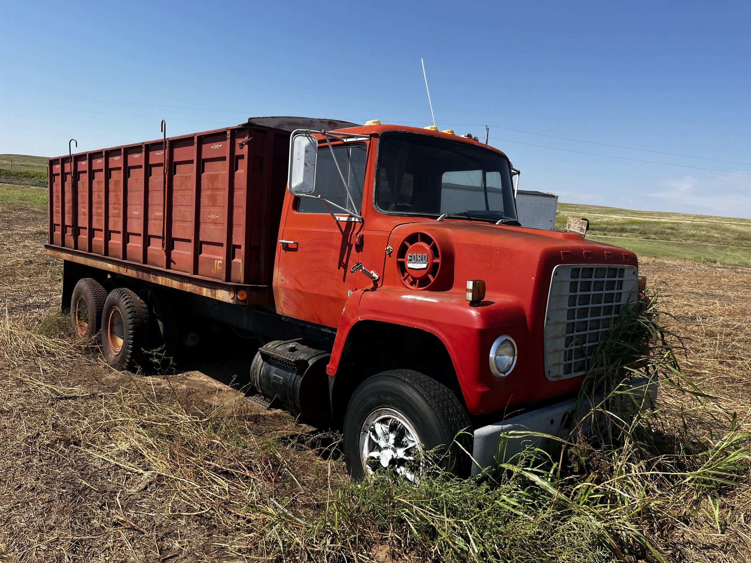 Ford 900 grain truck, VIN S91LVB38898, 20’ box, steel floor, tandem axle, diesel eng., 4X2 speed transmission