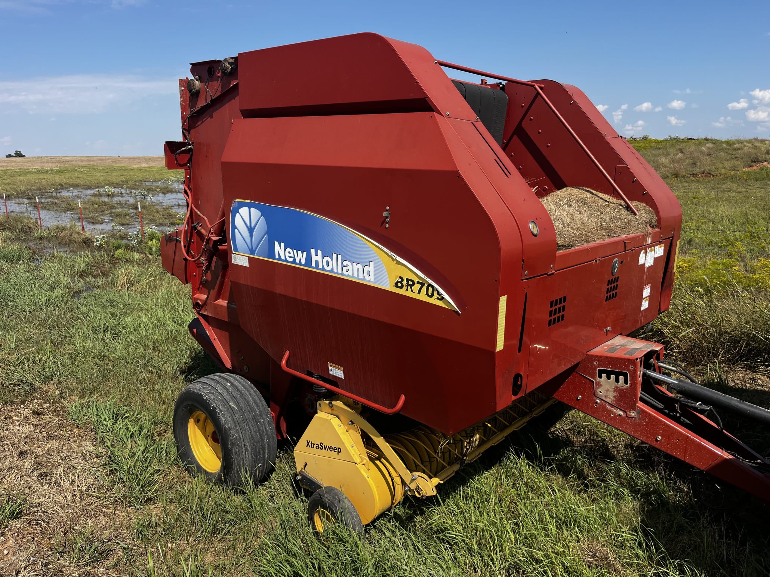 *New Holland BR7090 round baler, SN Y8N037975, net wrap, 4,907 bales, monitor