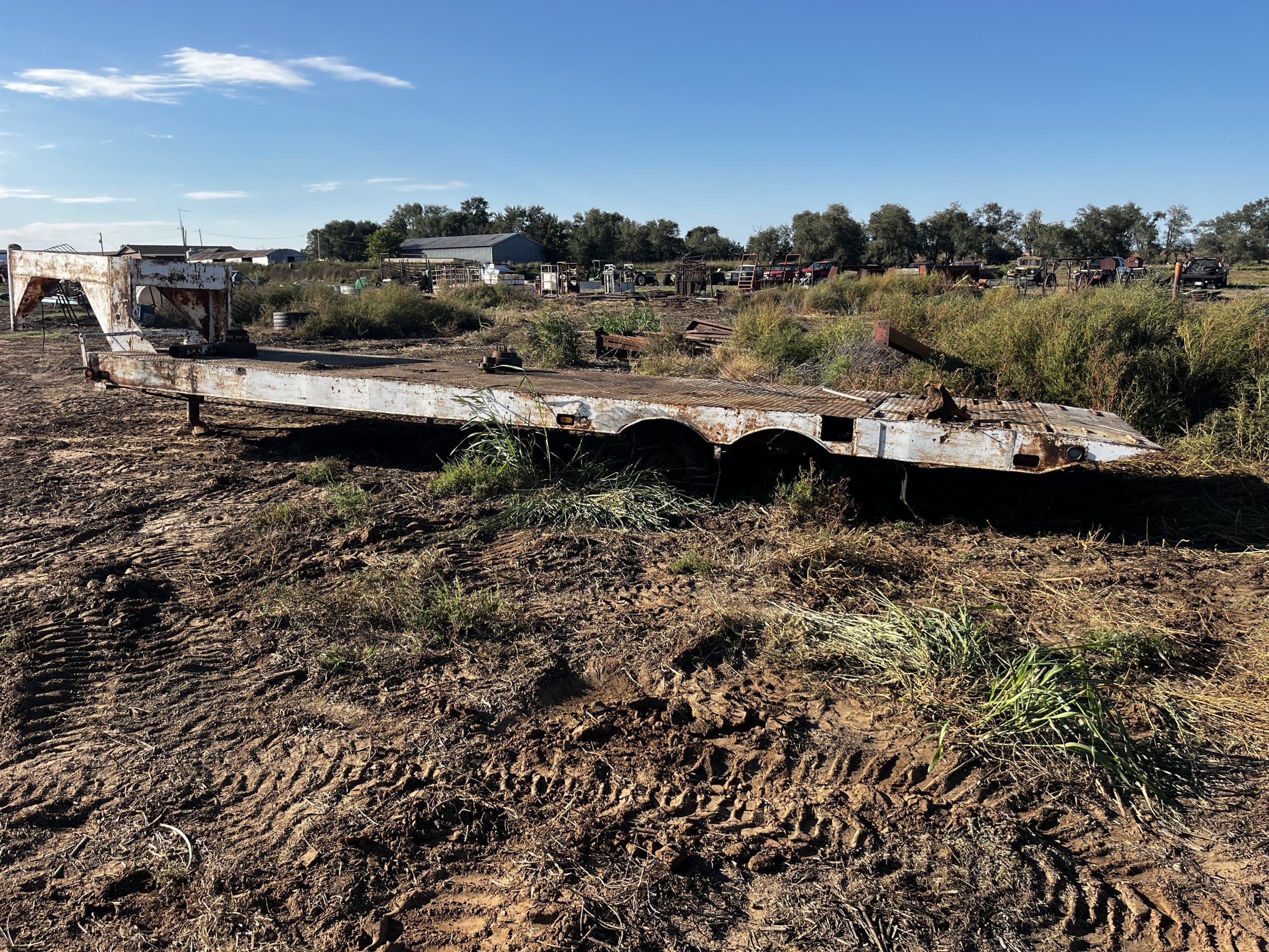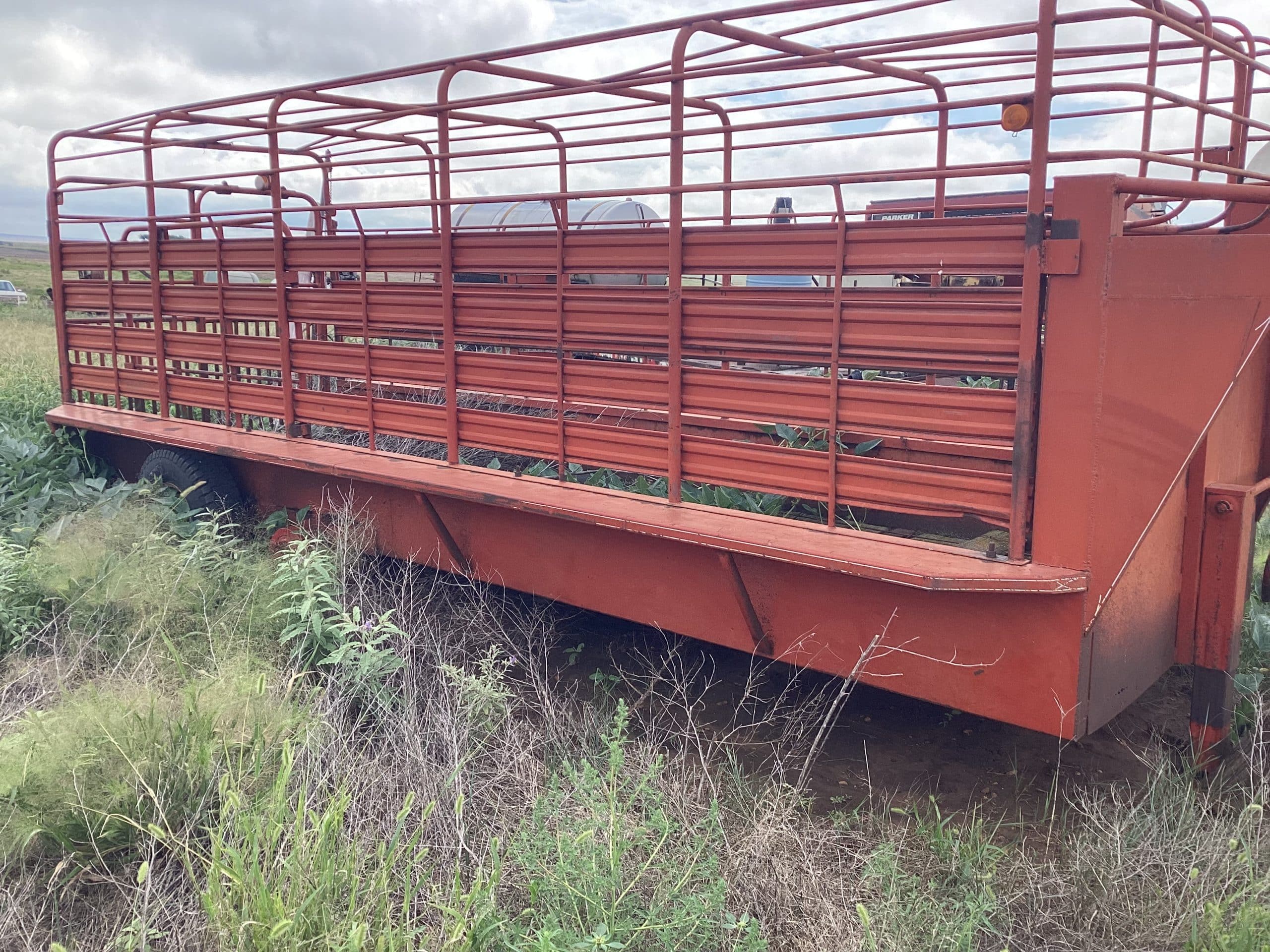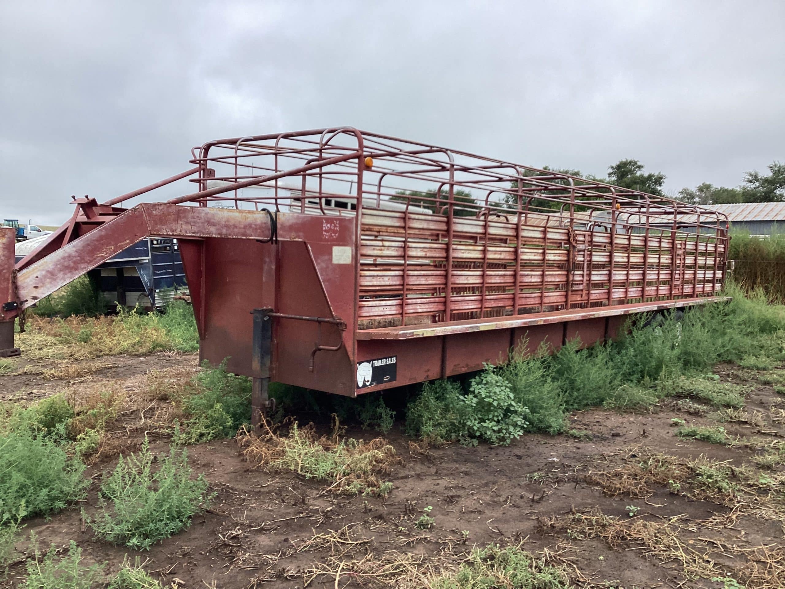 1981 WW gooseneck stock trailer, open top, 6’X20’, wood floor, VIN 091832, needs tires and floor, been in fire