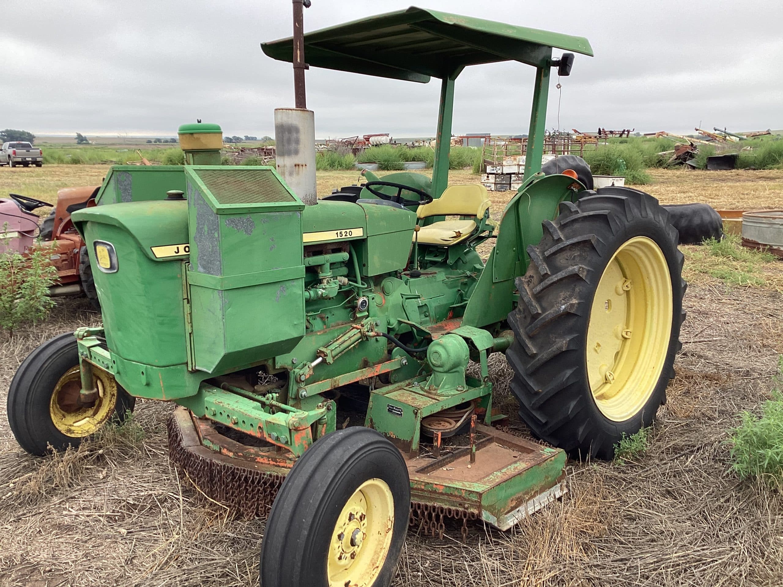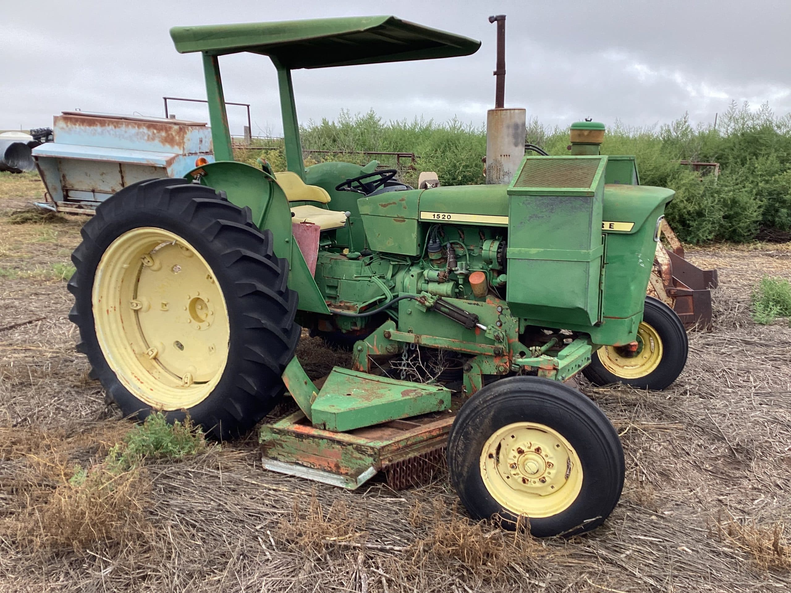 John Deere 1520 tractor, gas engine, belly mower, canopy