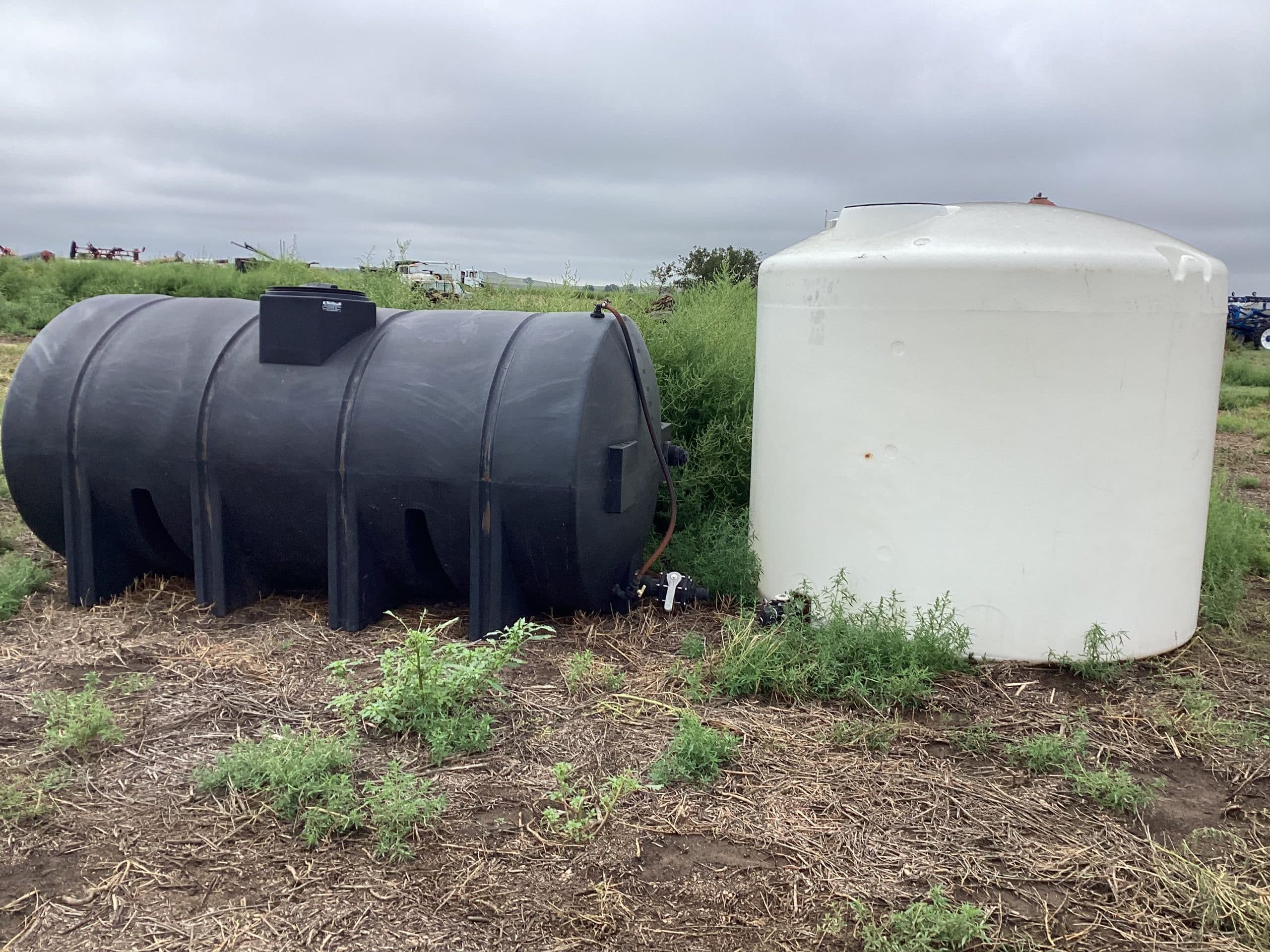 Numerous polly and steel tanks