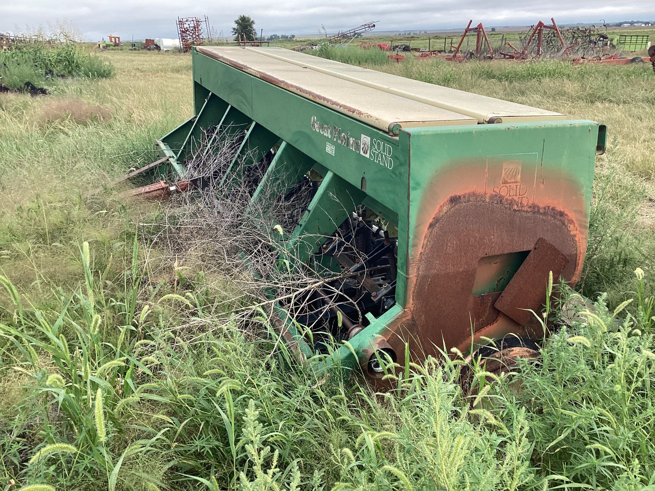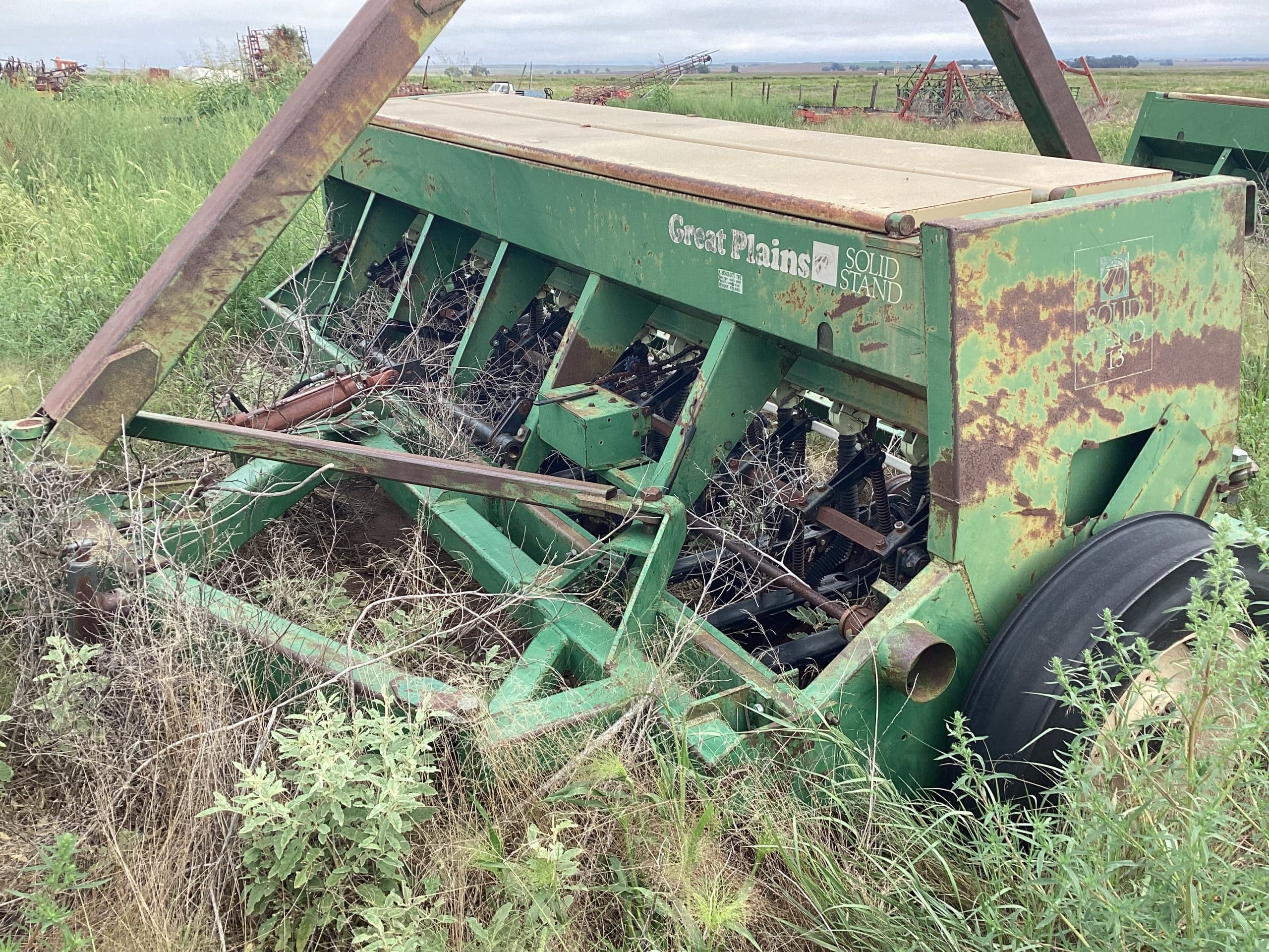 Great Plains Solid Stand13 end wheel drills, double disc, 10” spacing, w/dual drill hitch, rough