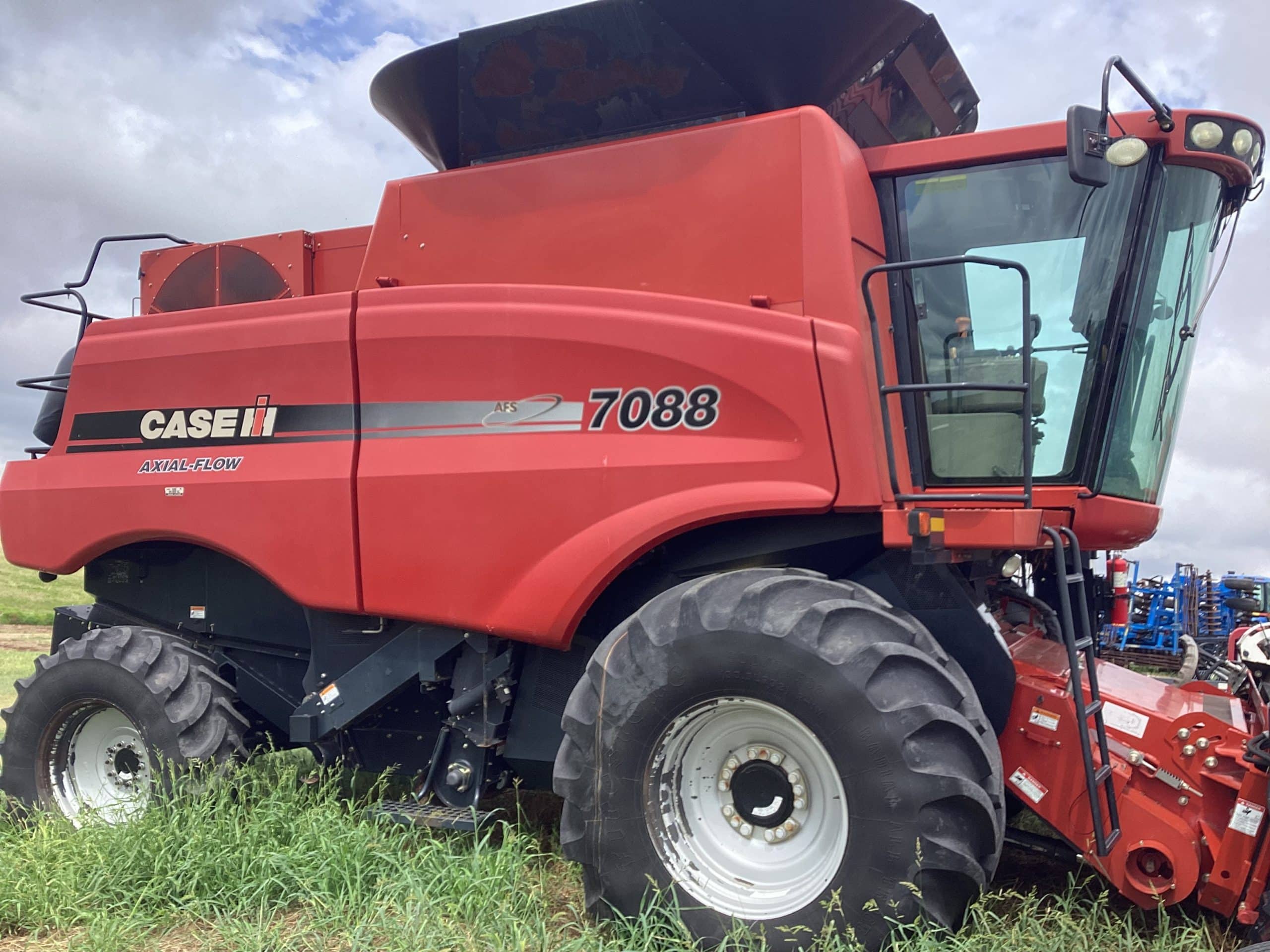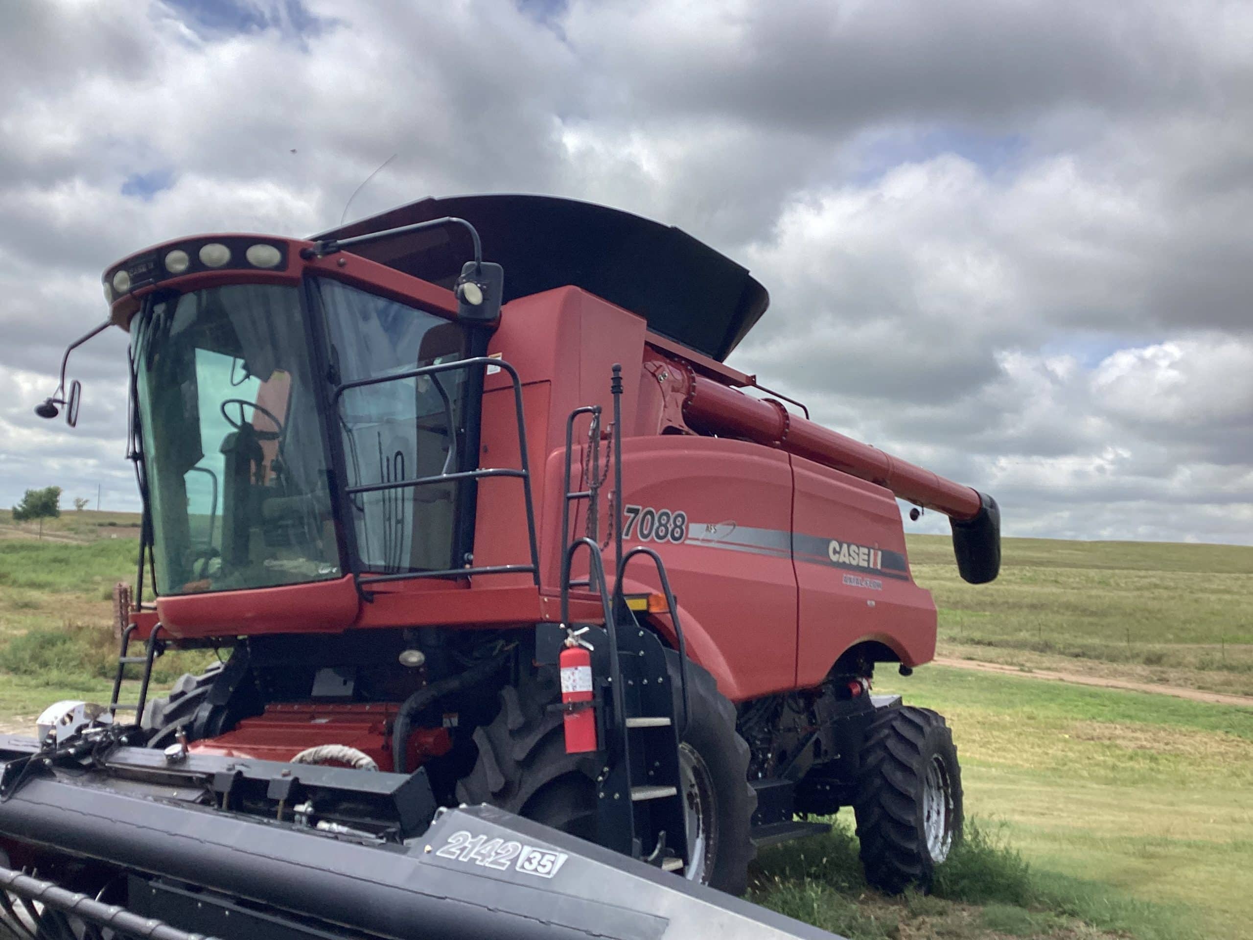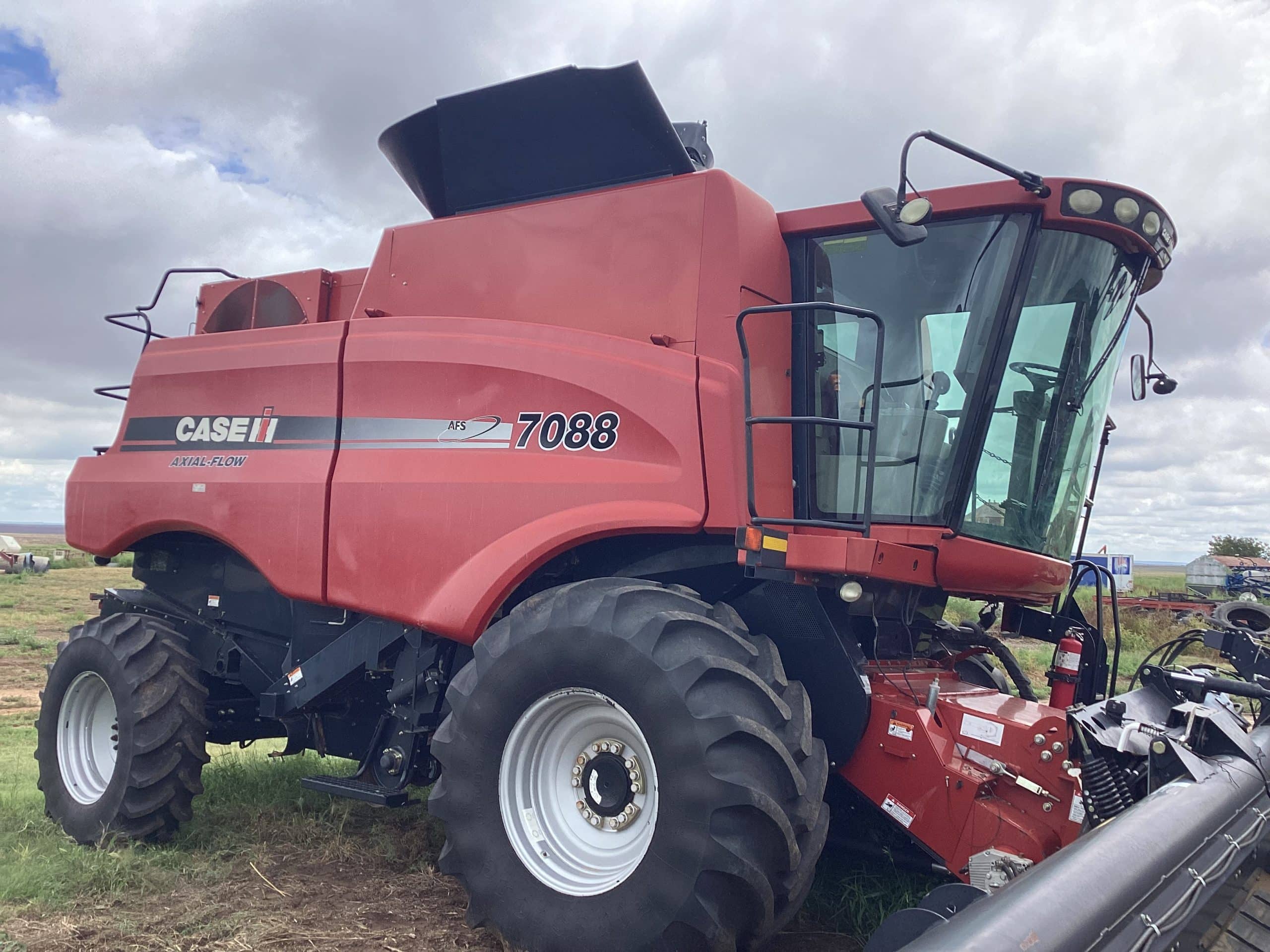*2011 CaseIH 7088, SN. YBG005857, Bish grain bin extensions, 948 Eng. Hrs., 618 Sep Hrs., round bar concaves, PF package, base tube unloading auger, ext. wear rotor w/4 bars, lateral tilt feeder, touch screen display, standard duty oil cooler, standard transition cone, straw chopper, spreaders, 1 1/8” sieves