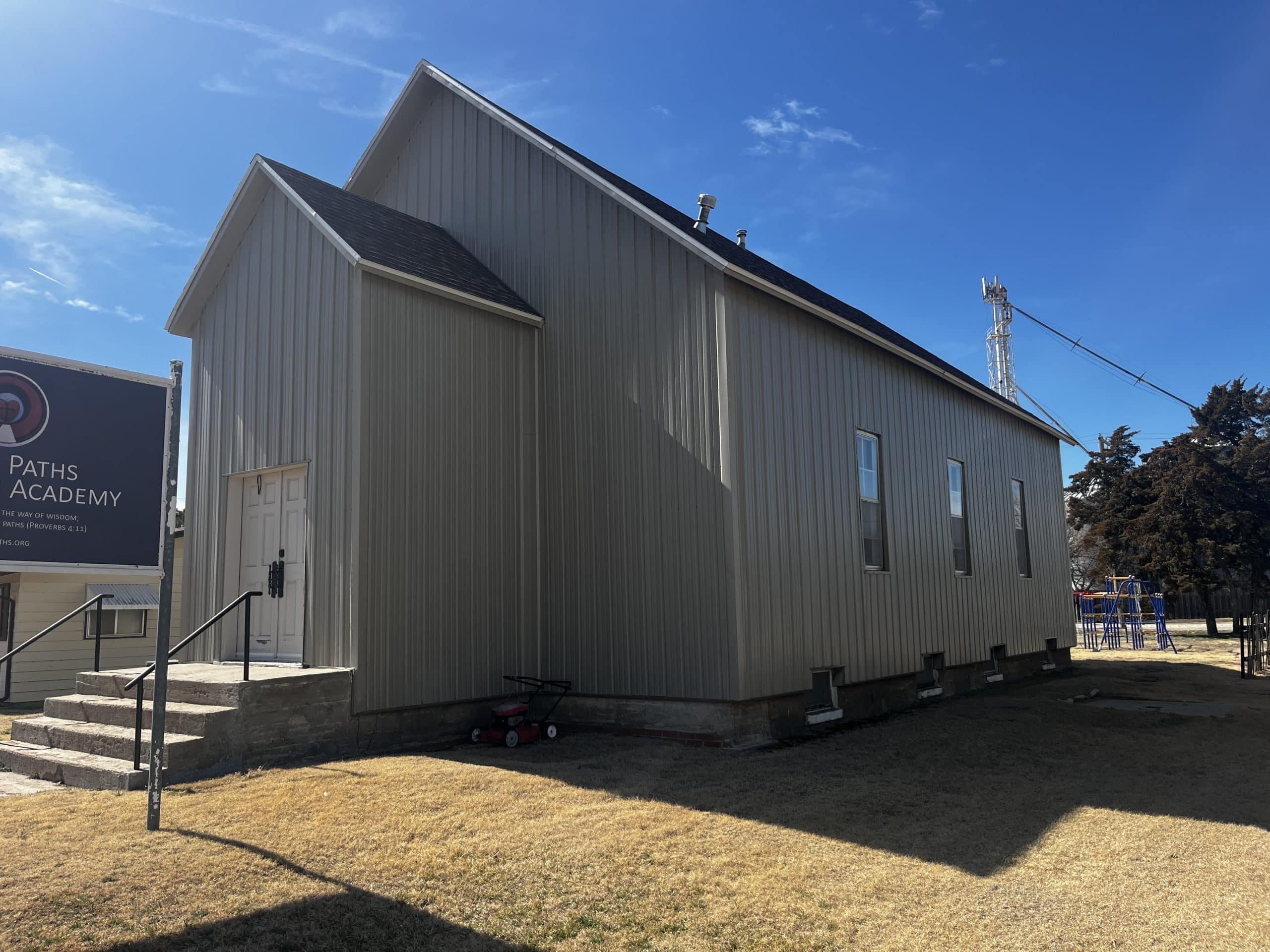 General Comments: This former church is serviced by city water and sewer, natural gas and electricity. This former church is a stud/stucco building built in 1950 and has 1,376 sq. ft. The building has steel siding and a shingled roof. This building has many possibilities weather it would be commercial or residential.