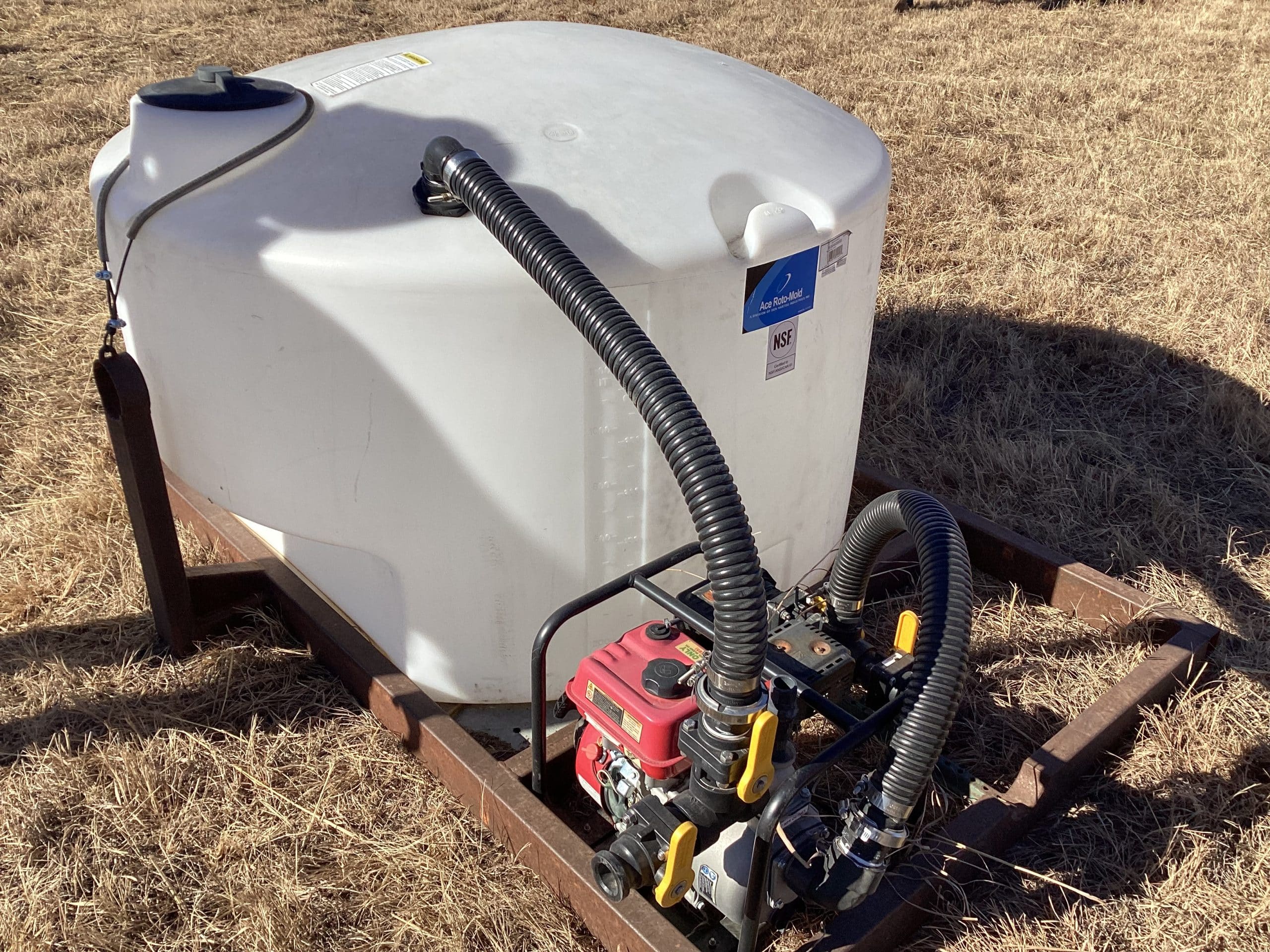 425gal water tank on hydro bed skid w/ Pretor pump engine