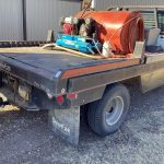 *1997 Ford F350 XLT, VIN 1FDKF38F7VEB11930, 139,407 miles, 7.3 Powerstroke diesel, single cab, 4X4, dually, DewEze 10’ bed, hyd. driven, gooseneck hitch, 5 speed manual transmission, elec. Windows/locks, grill guard, reg. service, title