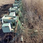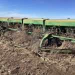 9300 John Deere hoe drills, 4 section, 8’12”, end transports, fert. tanks