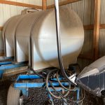 150 gallon poly tank on iron frame, pump