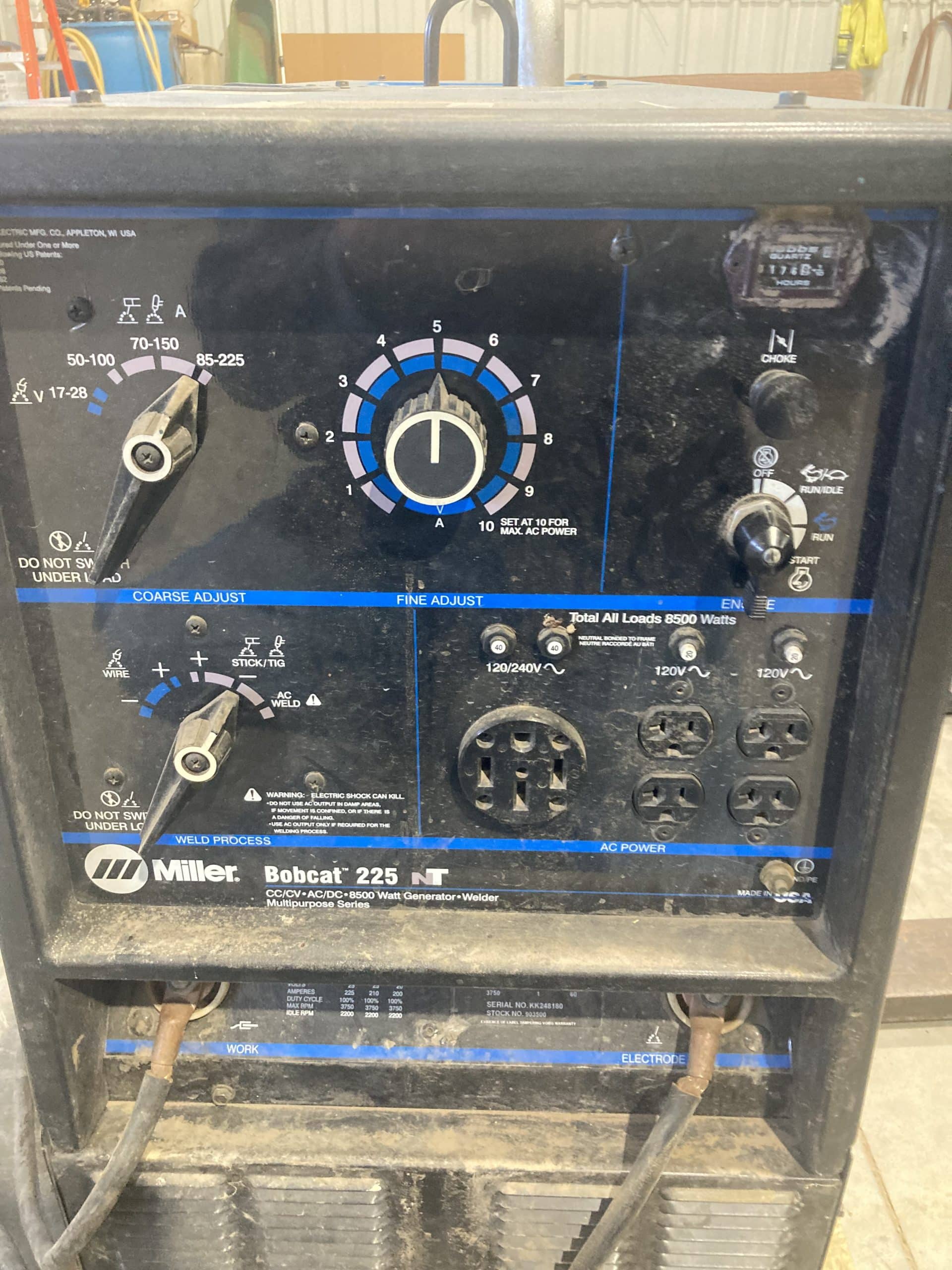 Miller Bobcat 225 welder/generator, 177 hrs., Onan engine, leads