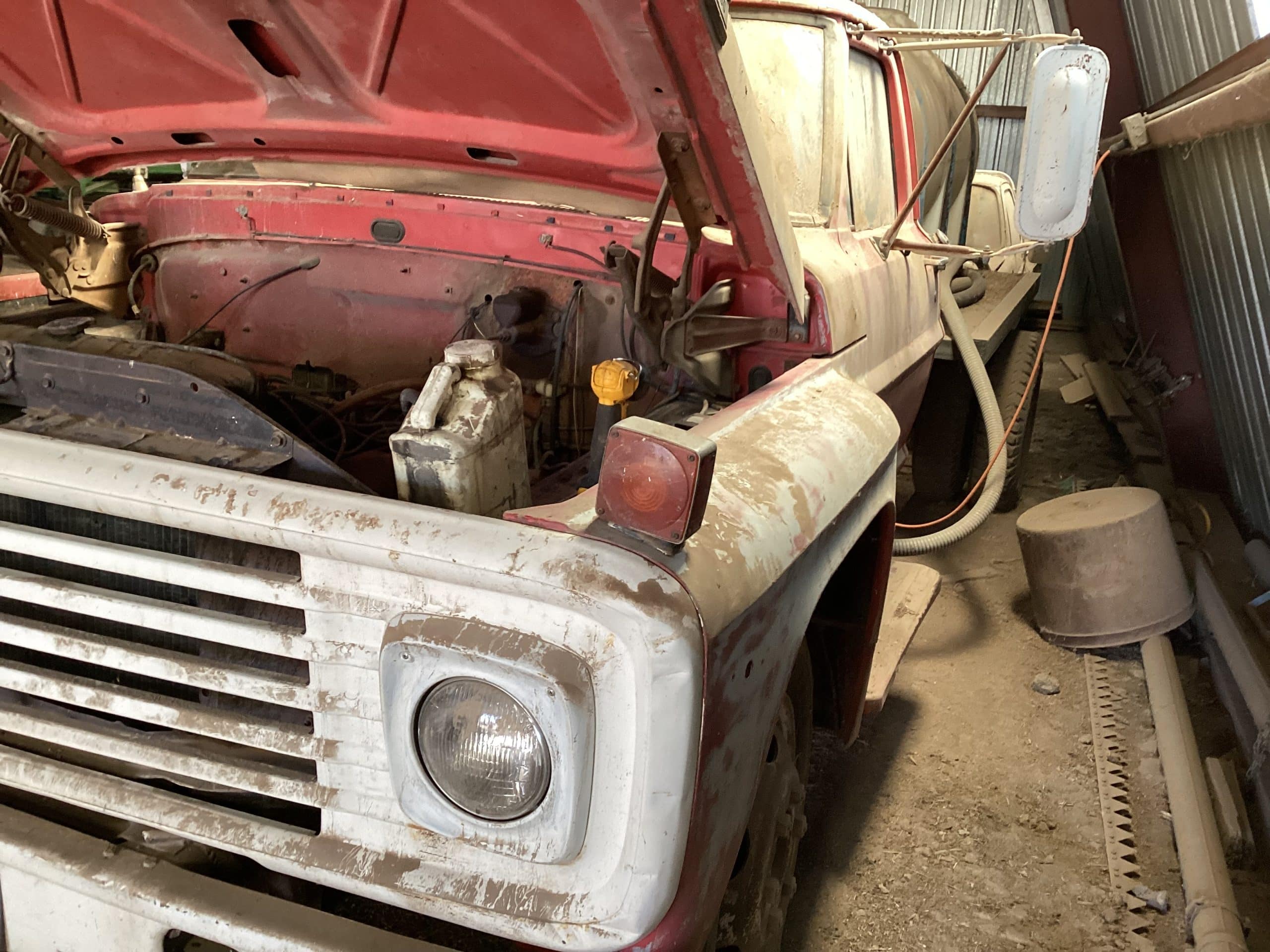1968 Ford truck, VIN F60DKD34074, 4X2 speed transmission (new), single axle, 330 Ford Eng., w/700 gallon poly tank, title