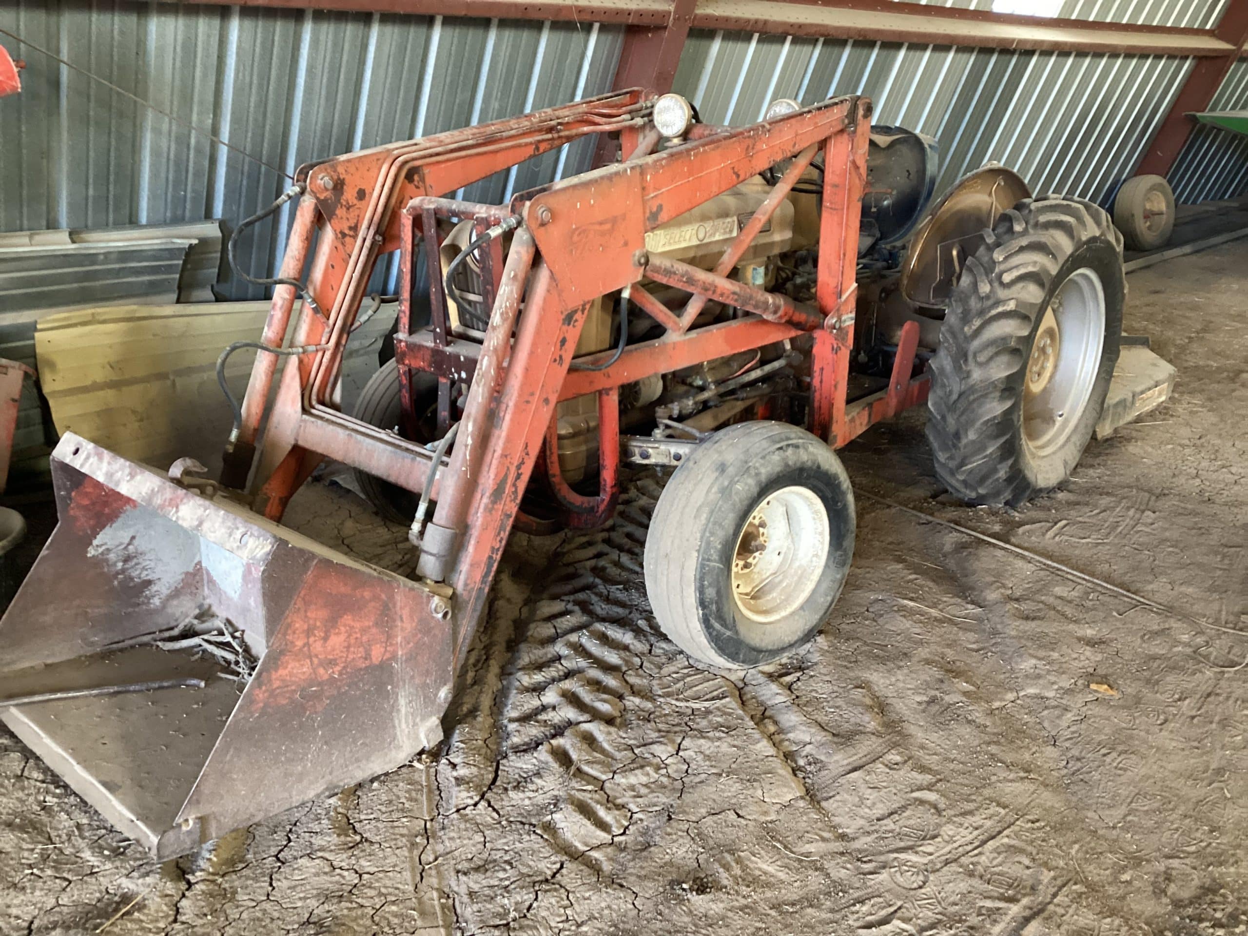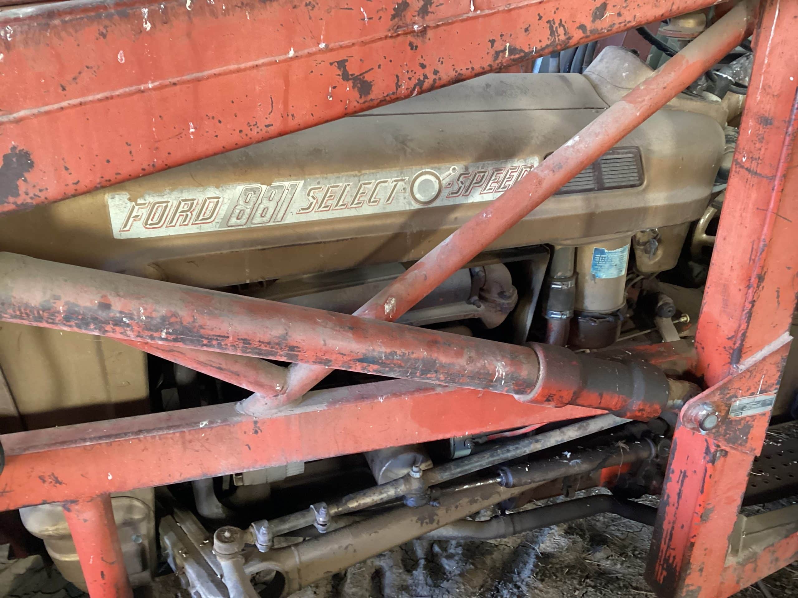 *1959 Ford 881 Gold Demonstrator, SN 63080, 2,456 hrs., 3 point, PTO, Select O Speed transmission, 13.6/28 NEW rear tires, Ford 703 loader, 40” bucket