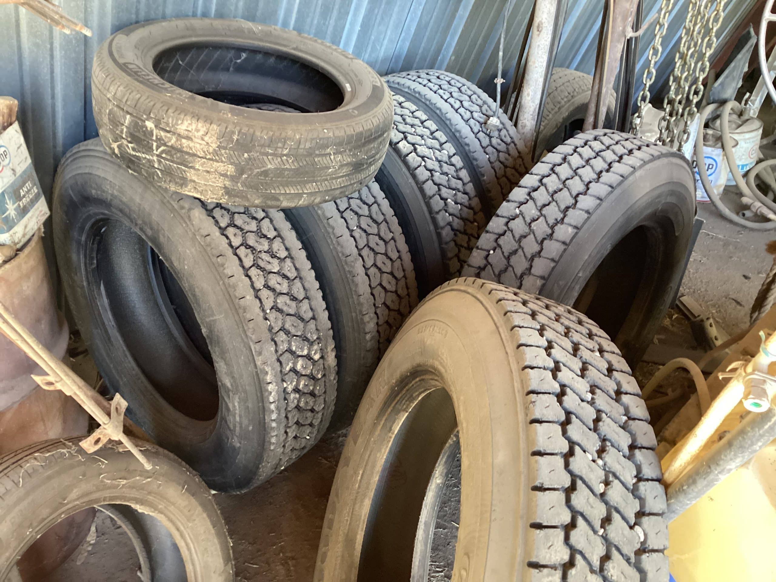 Numerous truck and implement tires