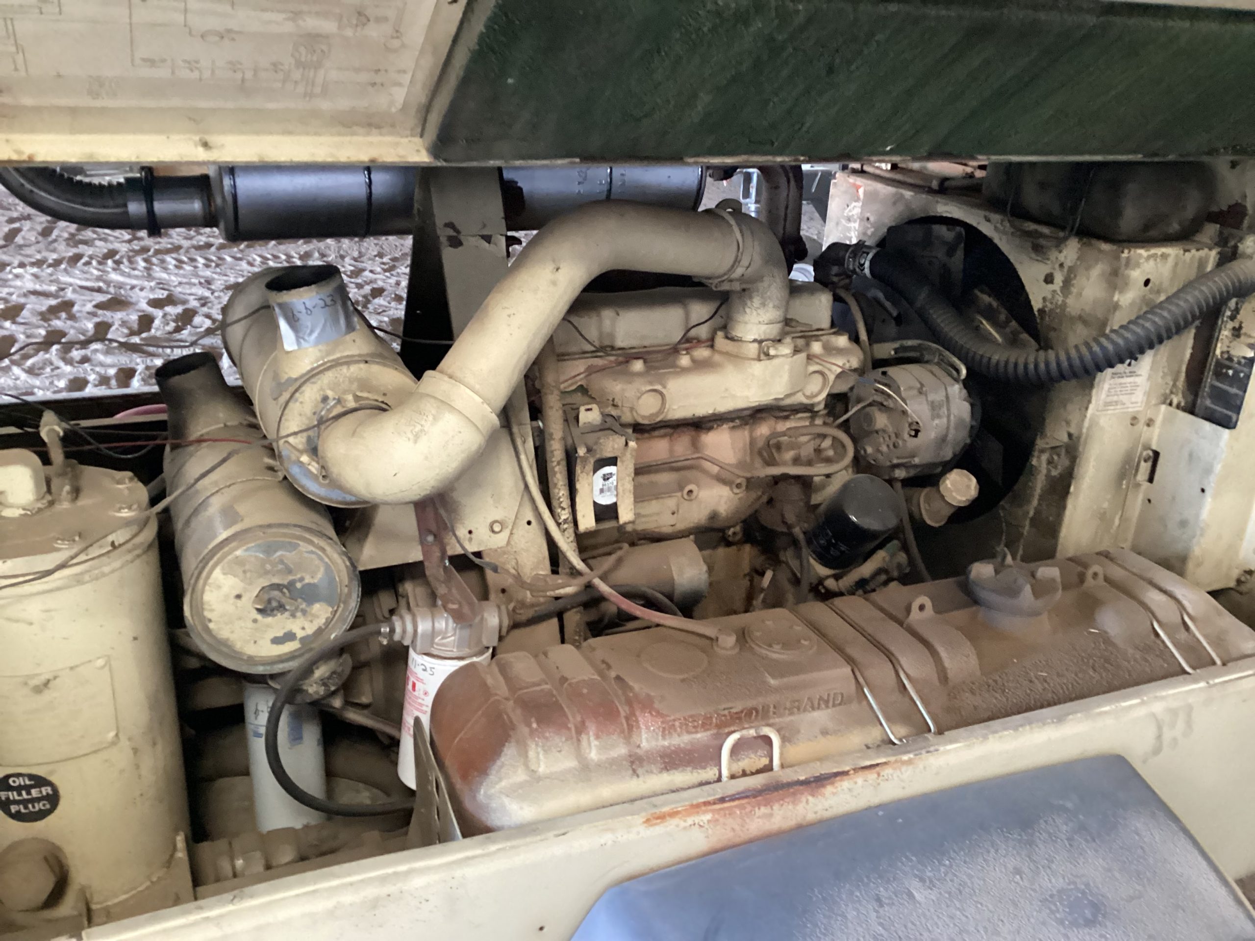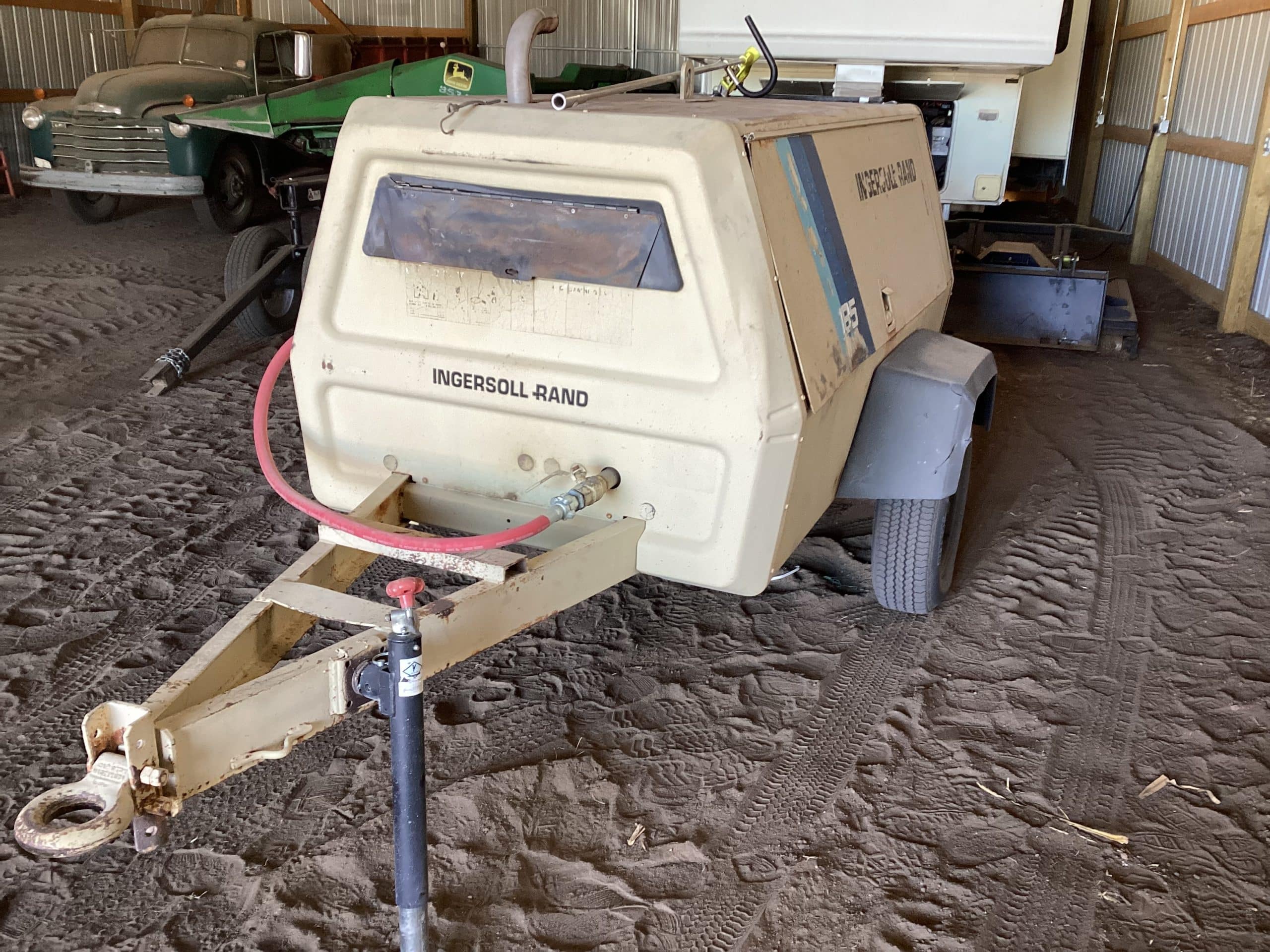 *Ingersoll Rand mobile air compressor, Deere diesel Eng., 100’ hose, new air guns