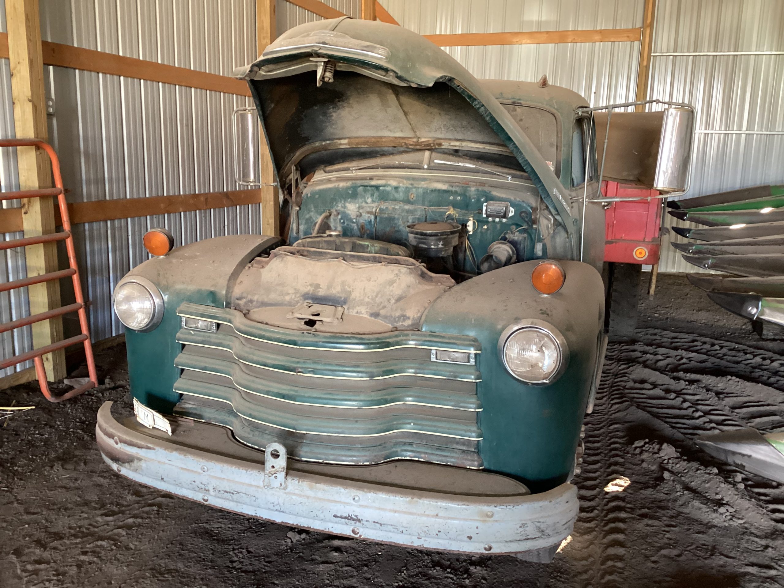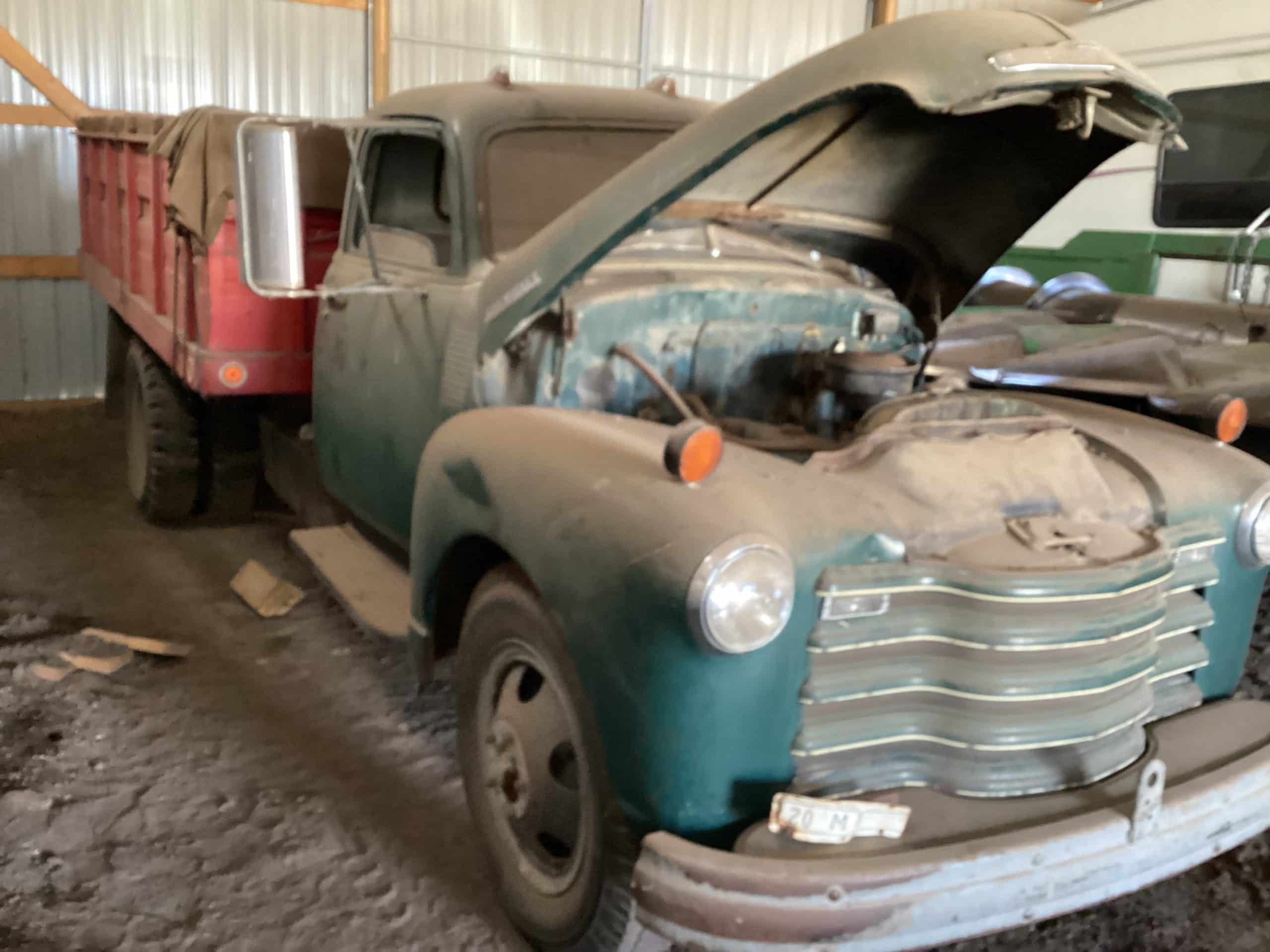 1948 Chevrolet grain truck, VIN 5RWSG6612, 4X2 speed transmission, 261 Eng., single axle, tarp, single cyl. Hoist, 13’ all steel bed, title