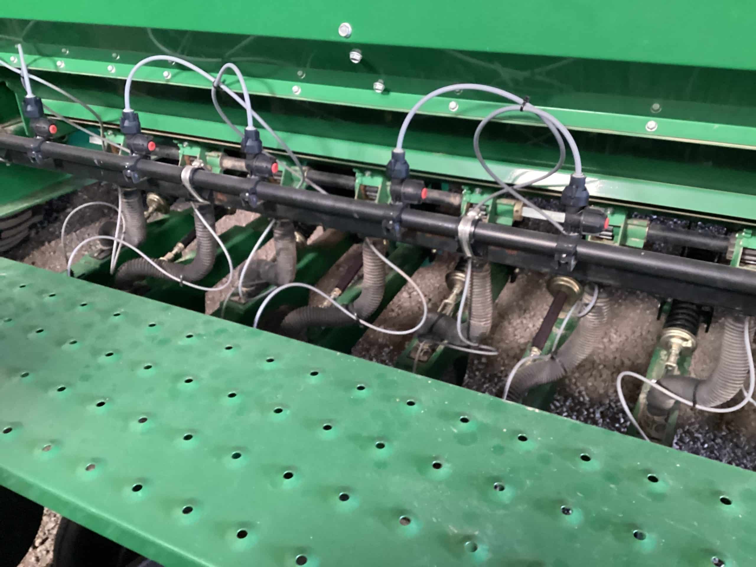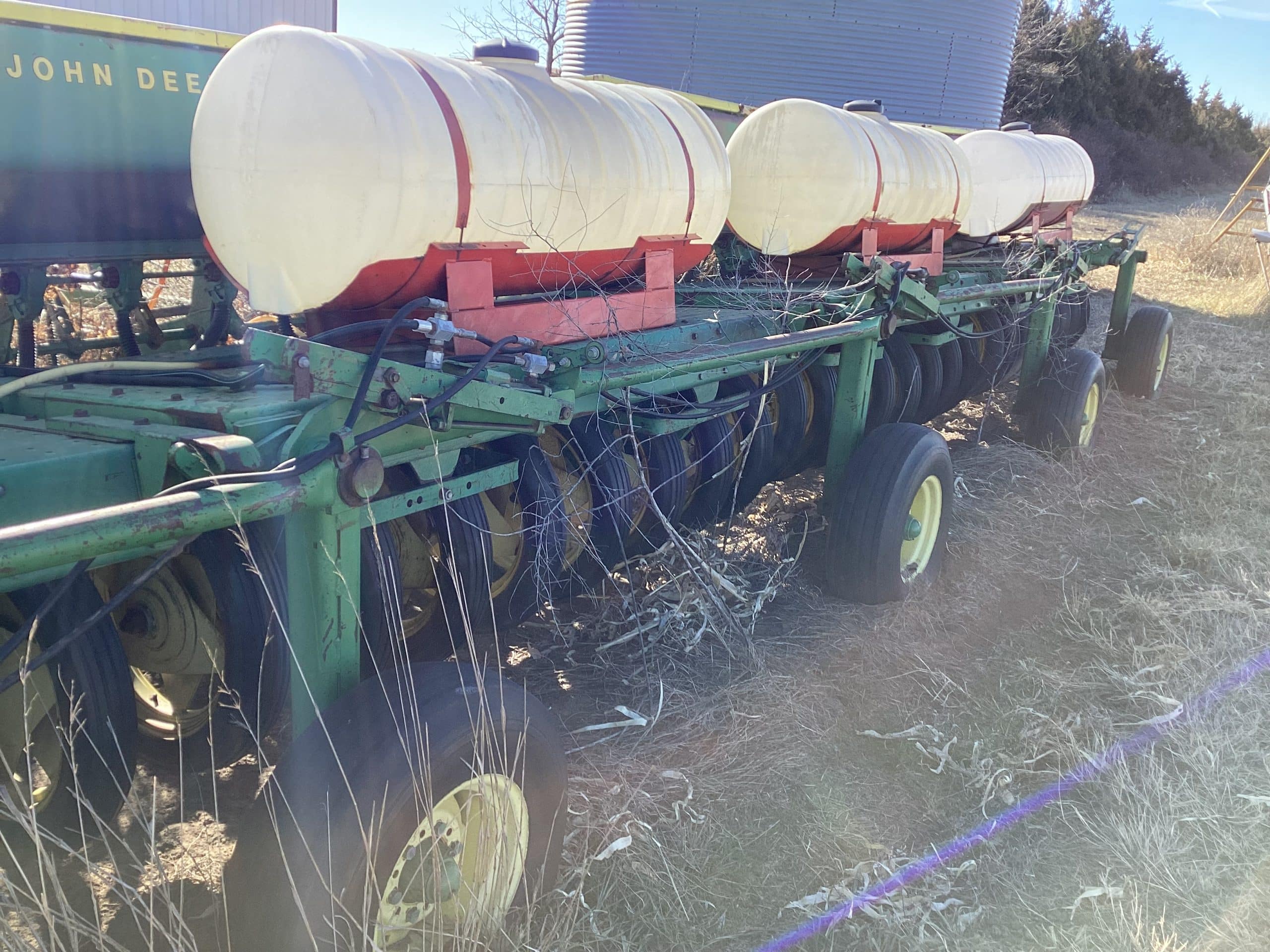 9300 John Deere hoe drills, 4 section, 8’12”, end transports, fert. tanks