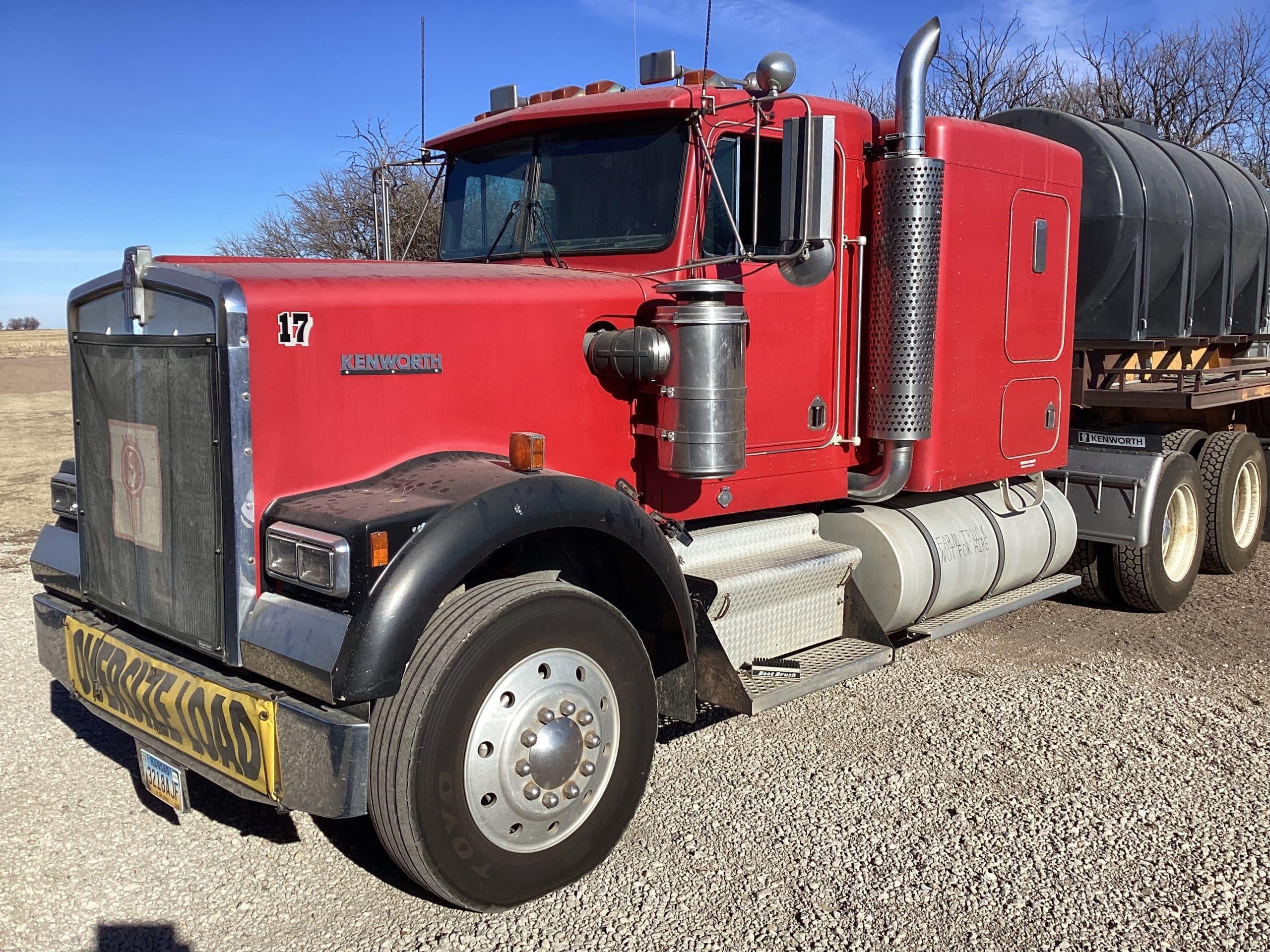 *1989 Kenworth semi, VIN 2XKWDB9X5KM53217, 3406B Cat Eng., 15 over speed transmission, sleeper, 285/75R24.5 tires, 1 yr old radiator, reg. service, title