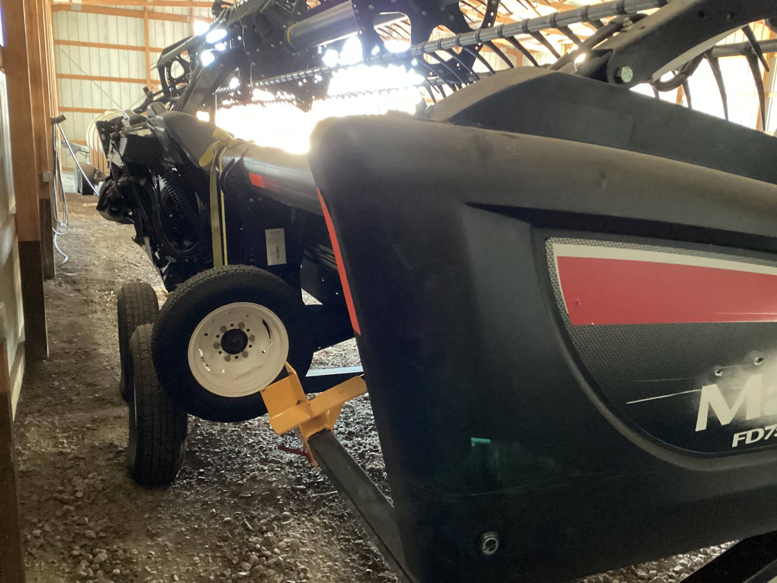 *2015 MacDon FD75 flex draper header, Gleaner adapter, assist wheels, SN 278400, one season on sickles and guards, many new parts recently installed, extra sickles