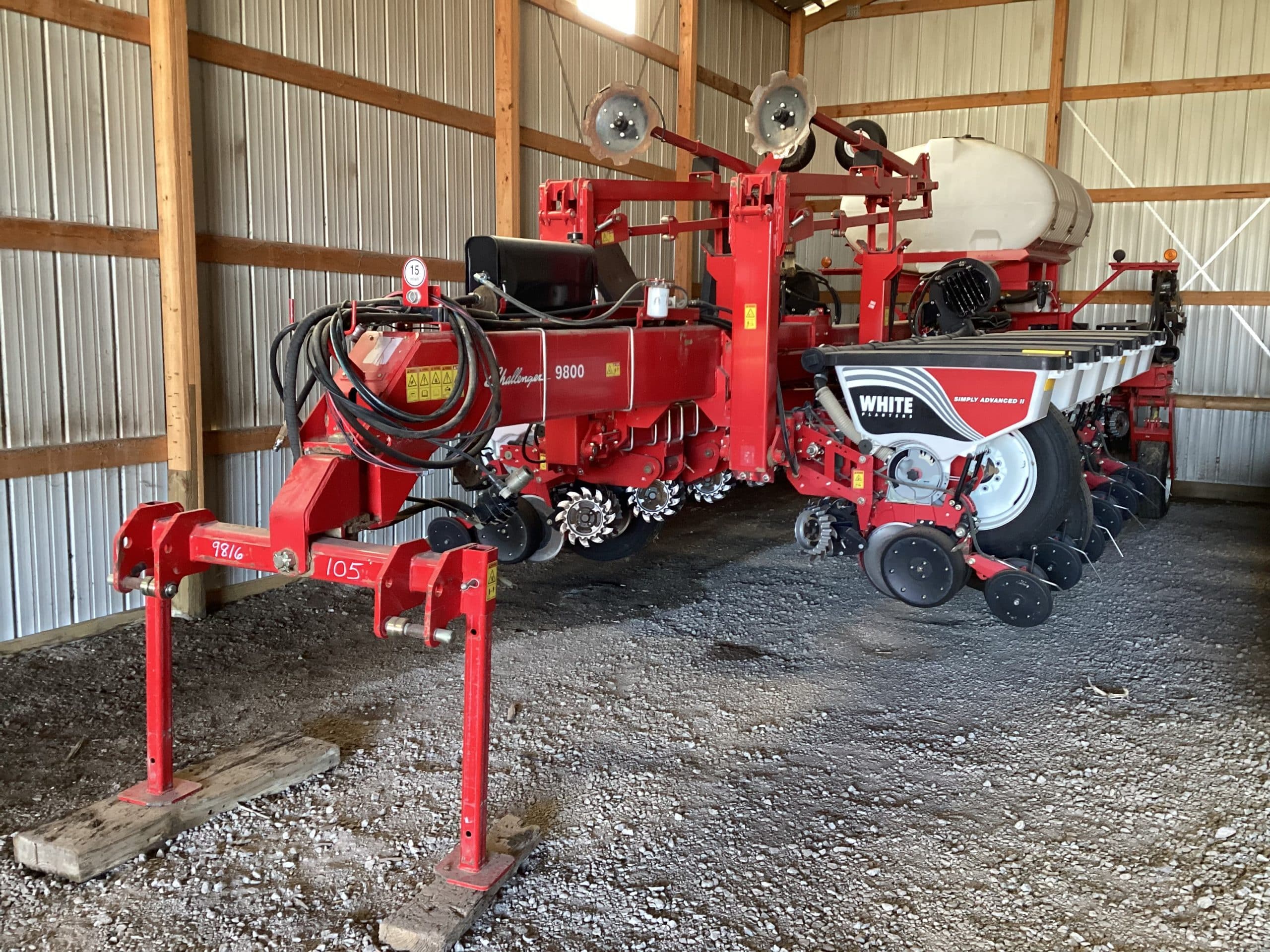 *2014 Agco Challenger WP9816 planter, SN W98160EH816105, 750 gallon tank, 16 row, drive shut off switch, pump and reservoir, markers, Yetter trash whips, dual angle closers, high rate sensors, gauge wheel scrapers, flex shaft drive, pneumatic down pressure springs, small 1000 oil pump drive, new openers and gauge wheels 2025, 350 acres after service