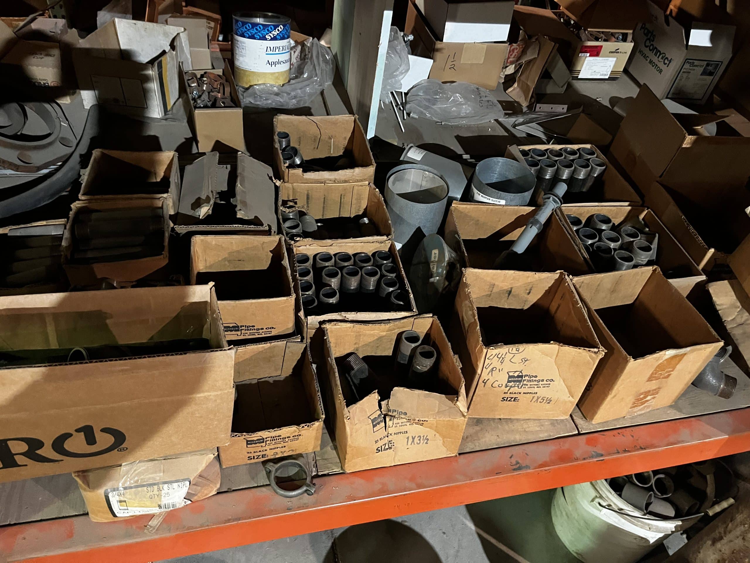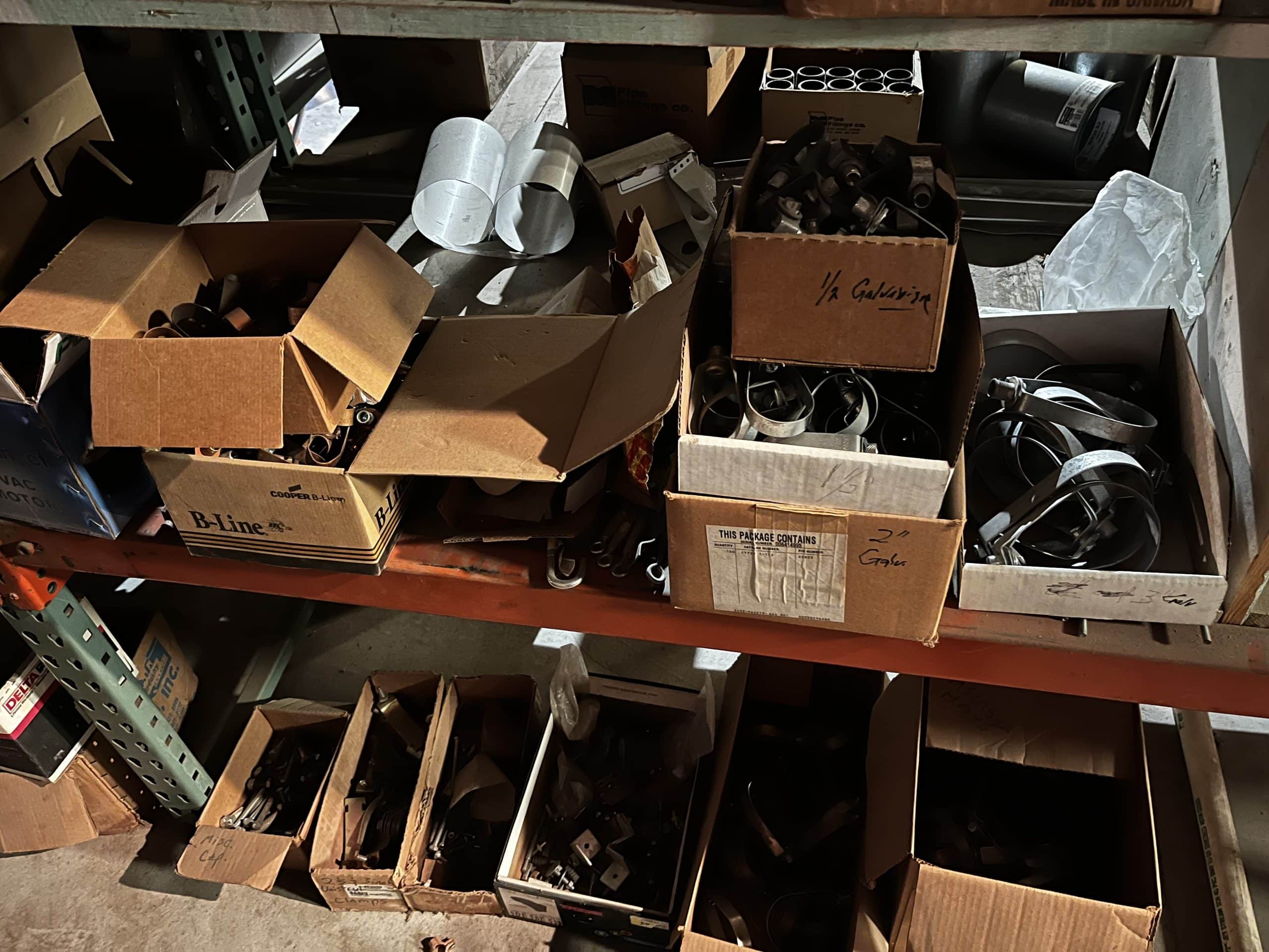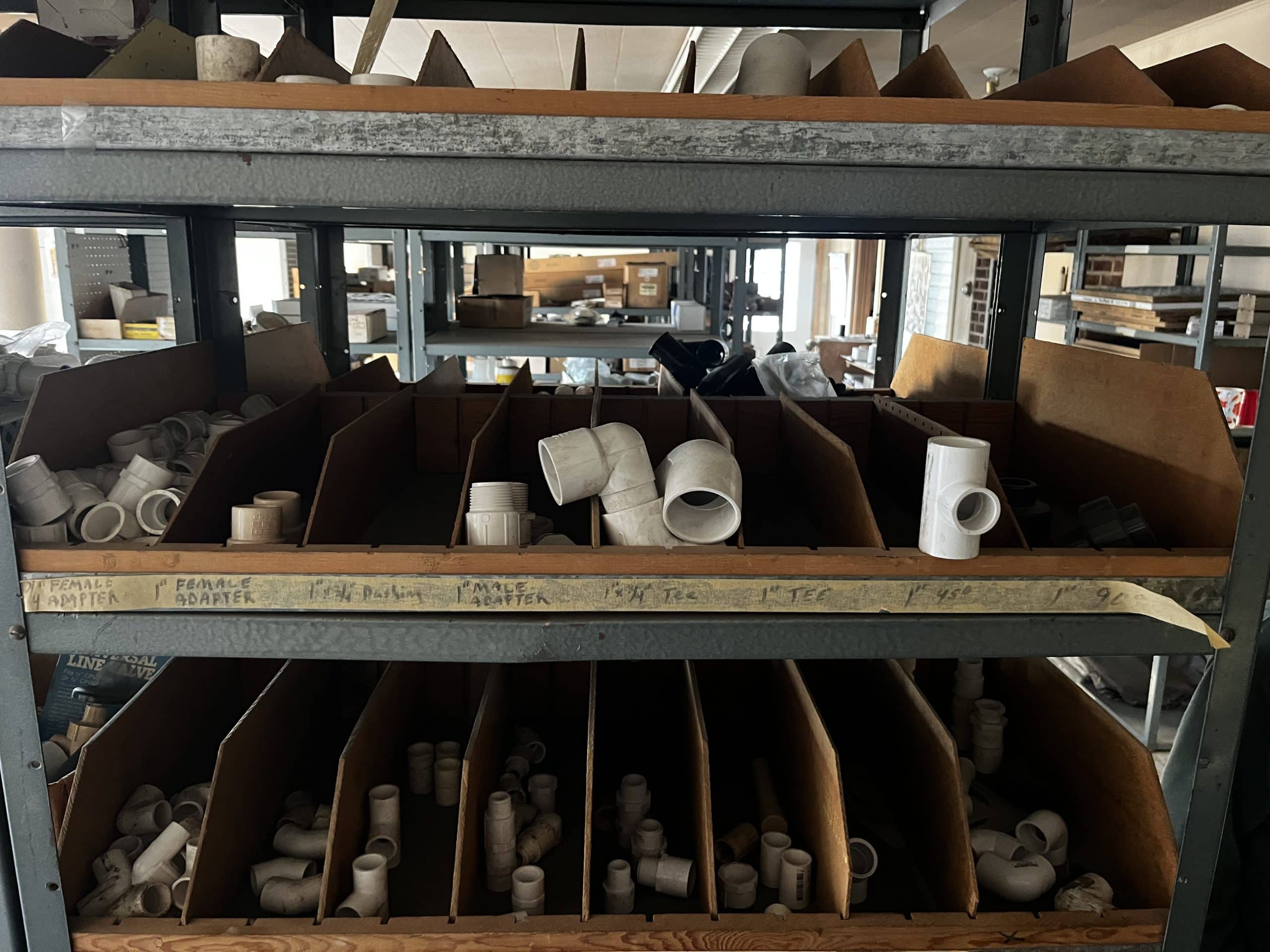 Pallet shelving, parts bins, storage compartments, steel shelving