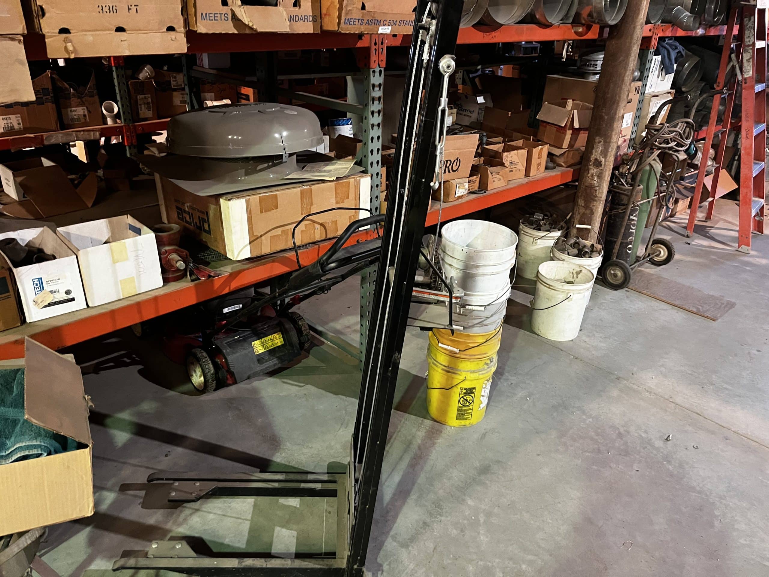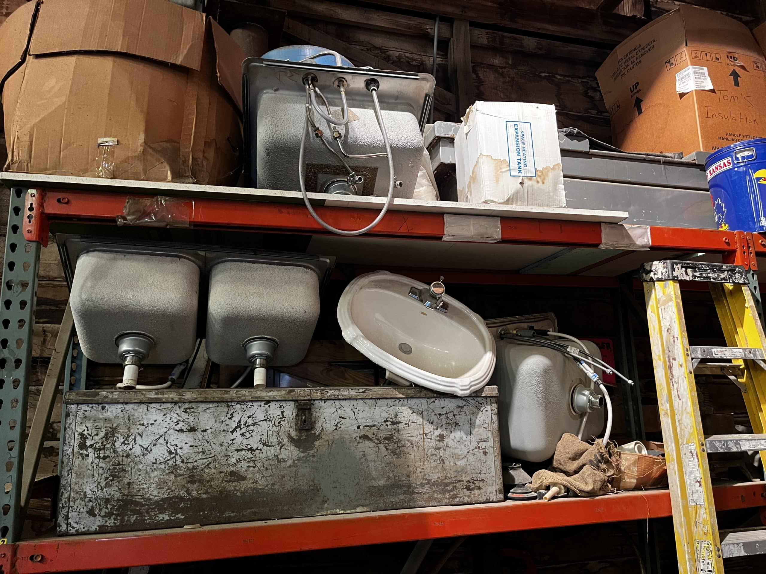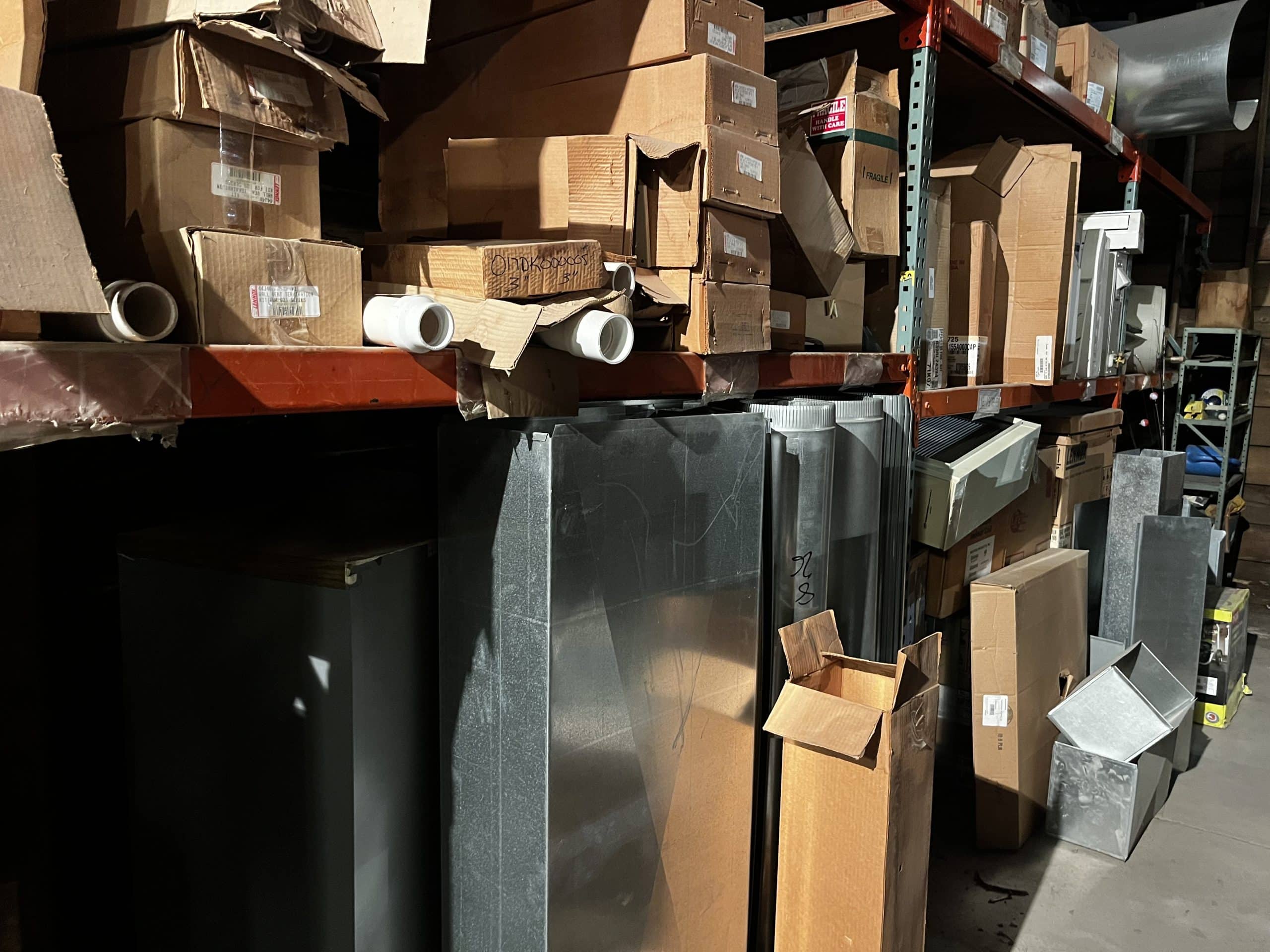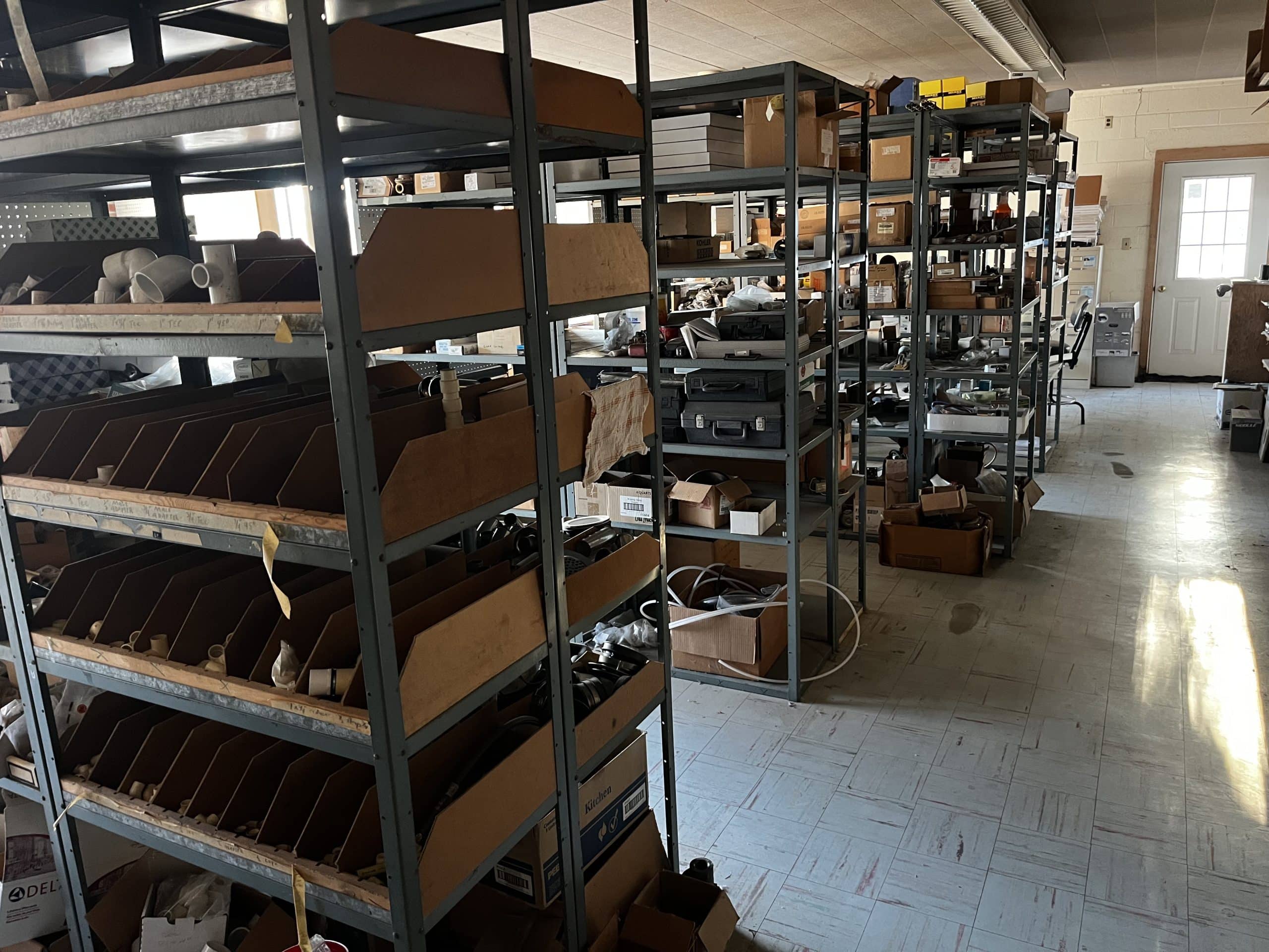 Pallet shelving, parts bins, storage compartments, steel shelving