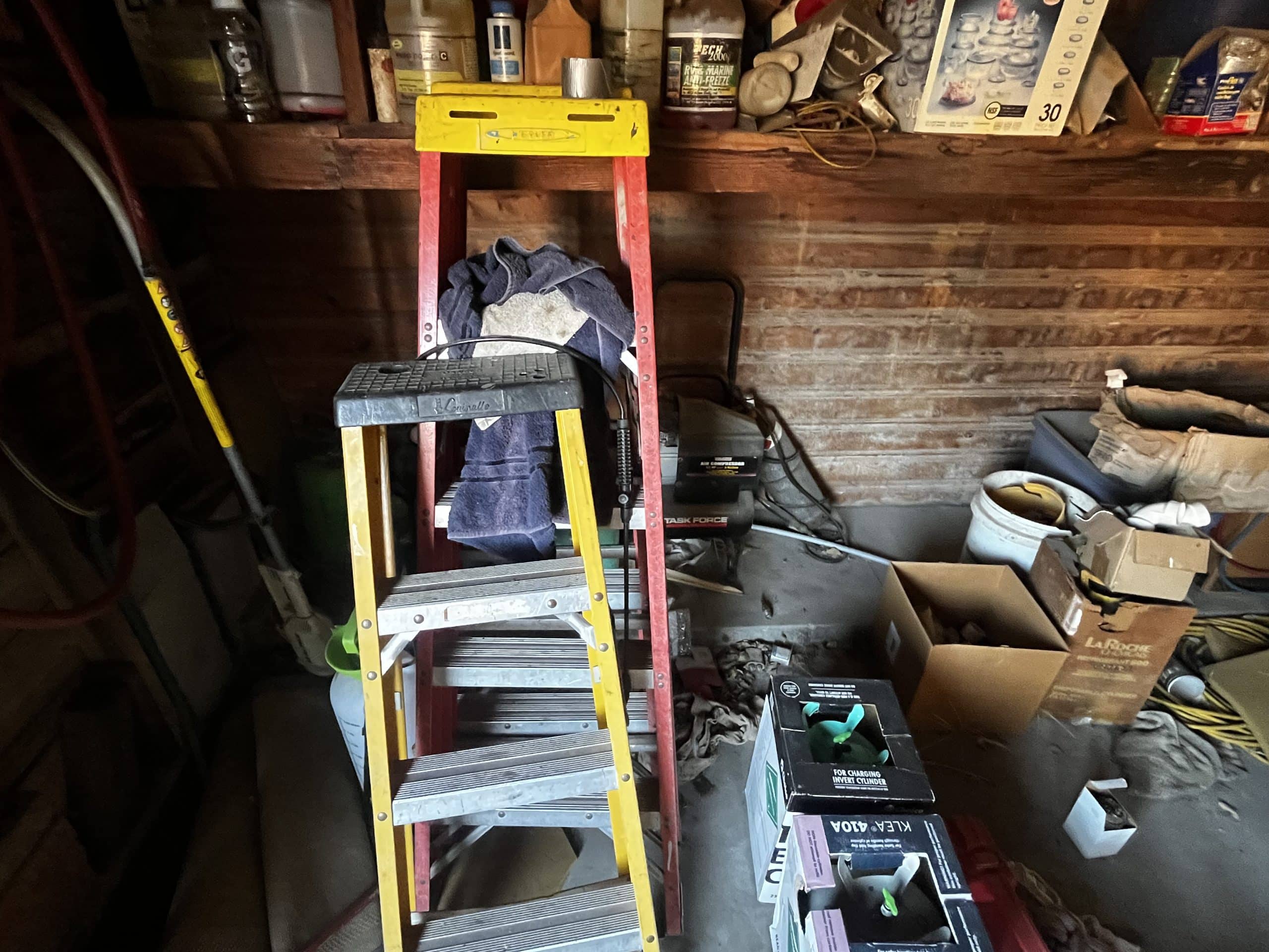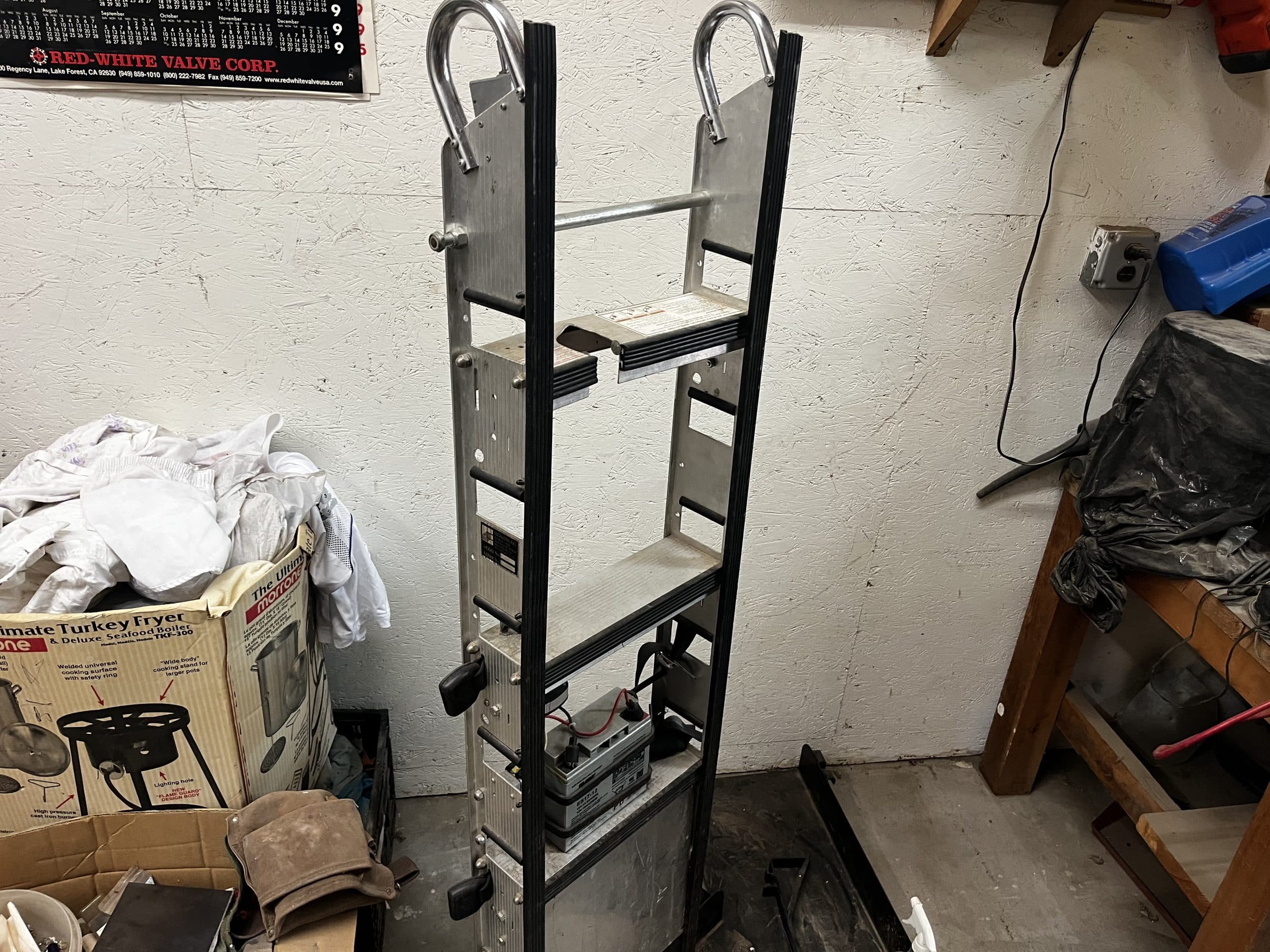 Numerous fiberglass ladders