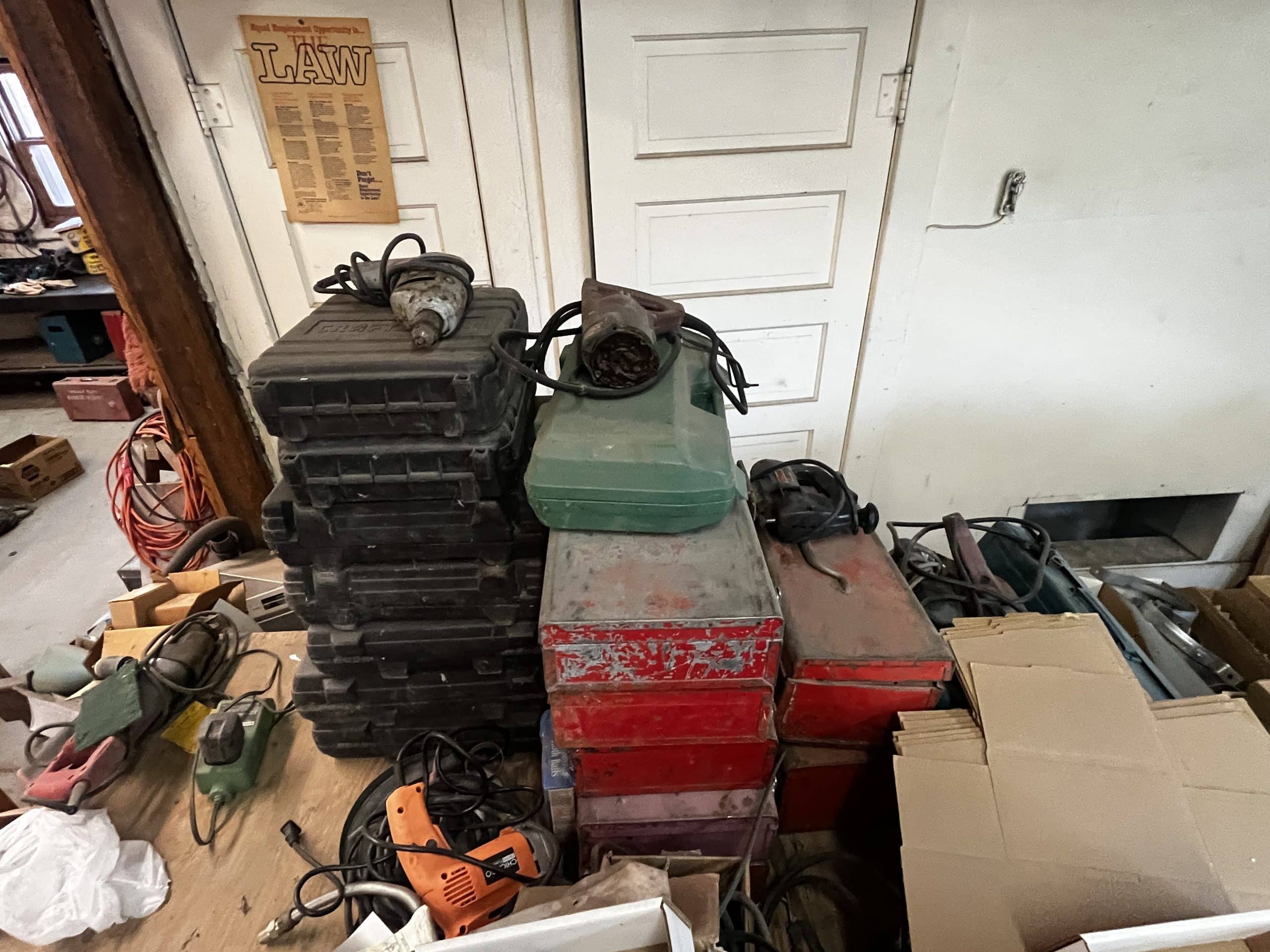 Numerous corded tools (saws, drills, sanders, etc.)